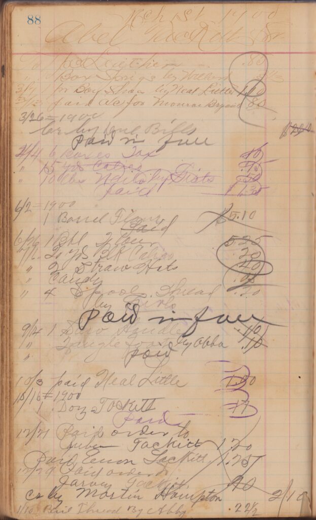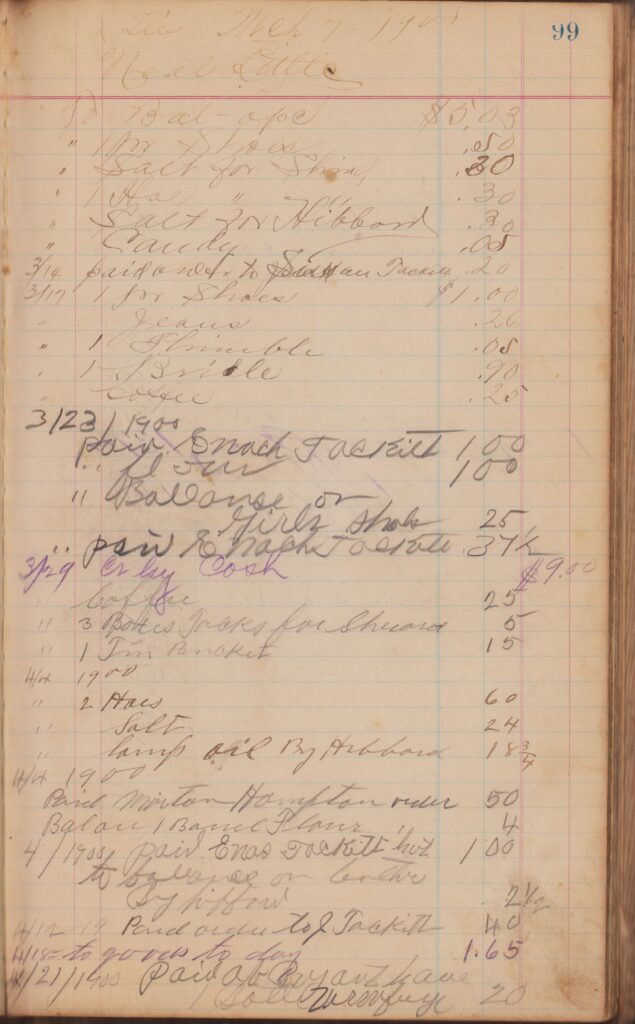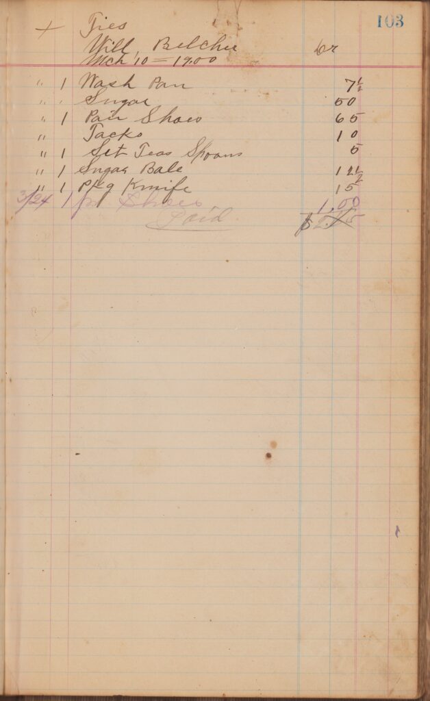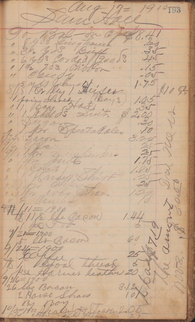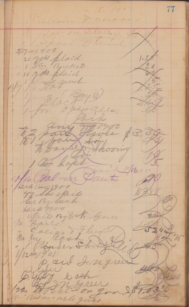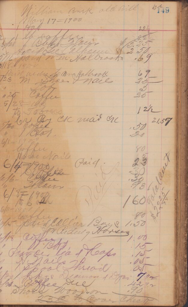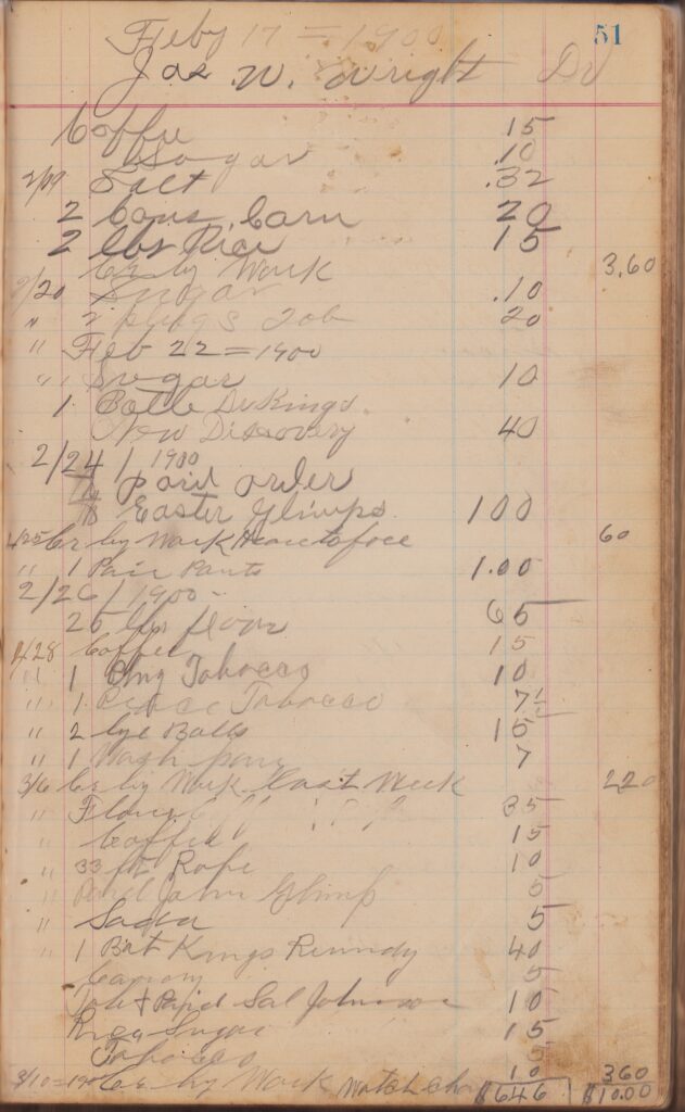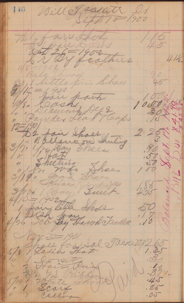 Store ledger dates from 1900 to 1902