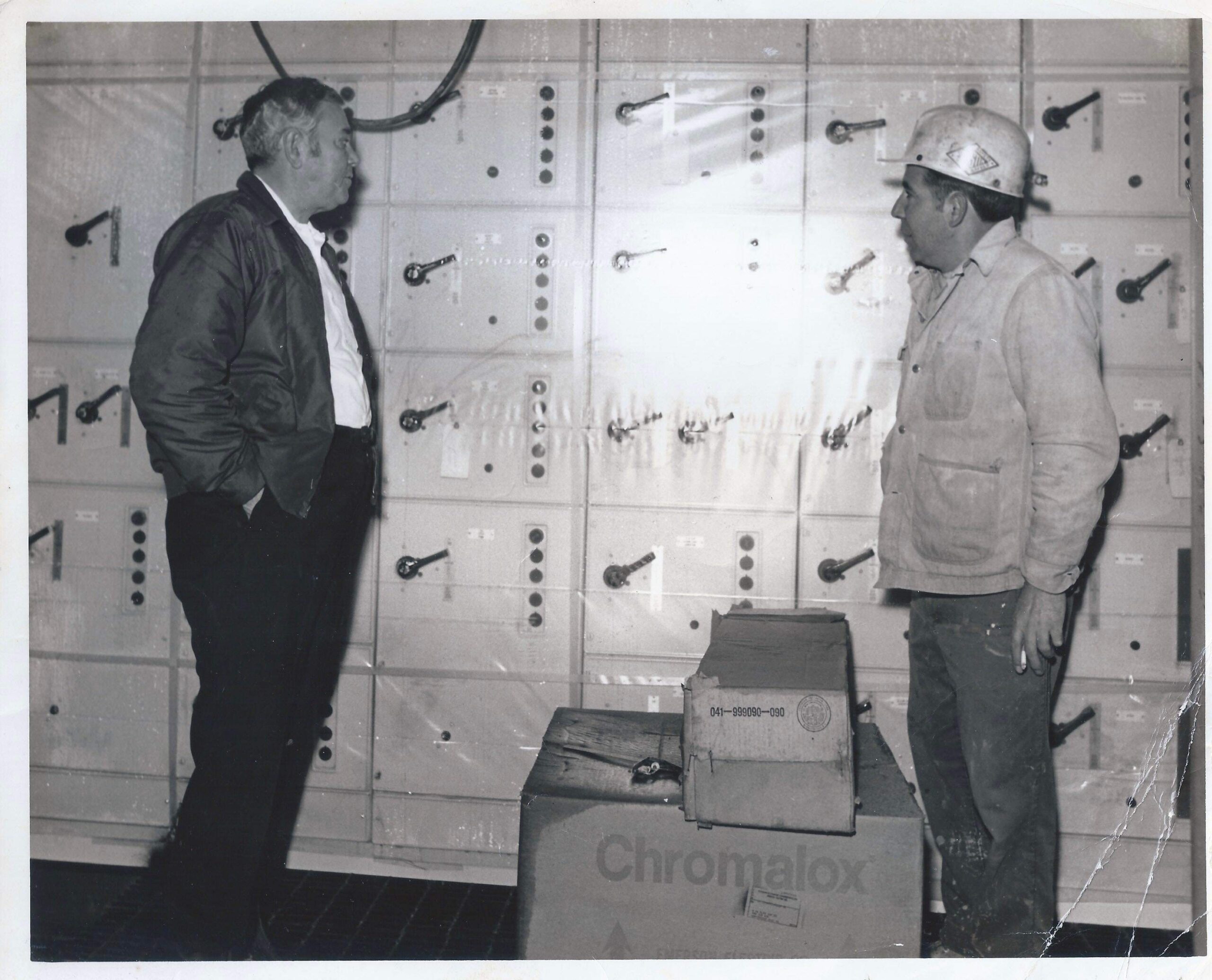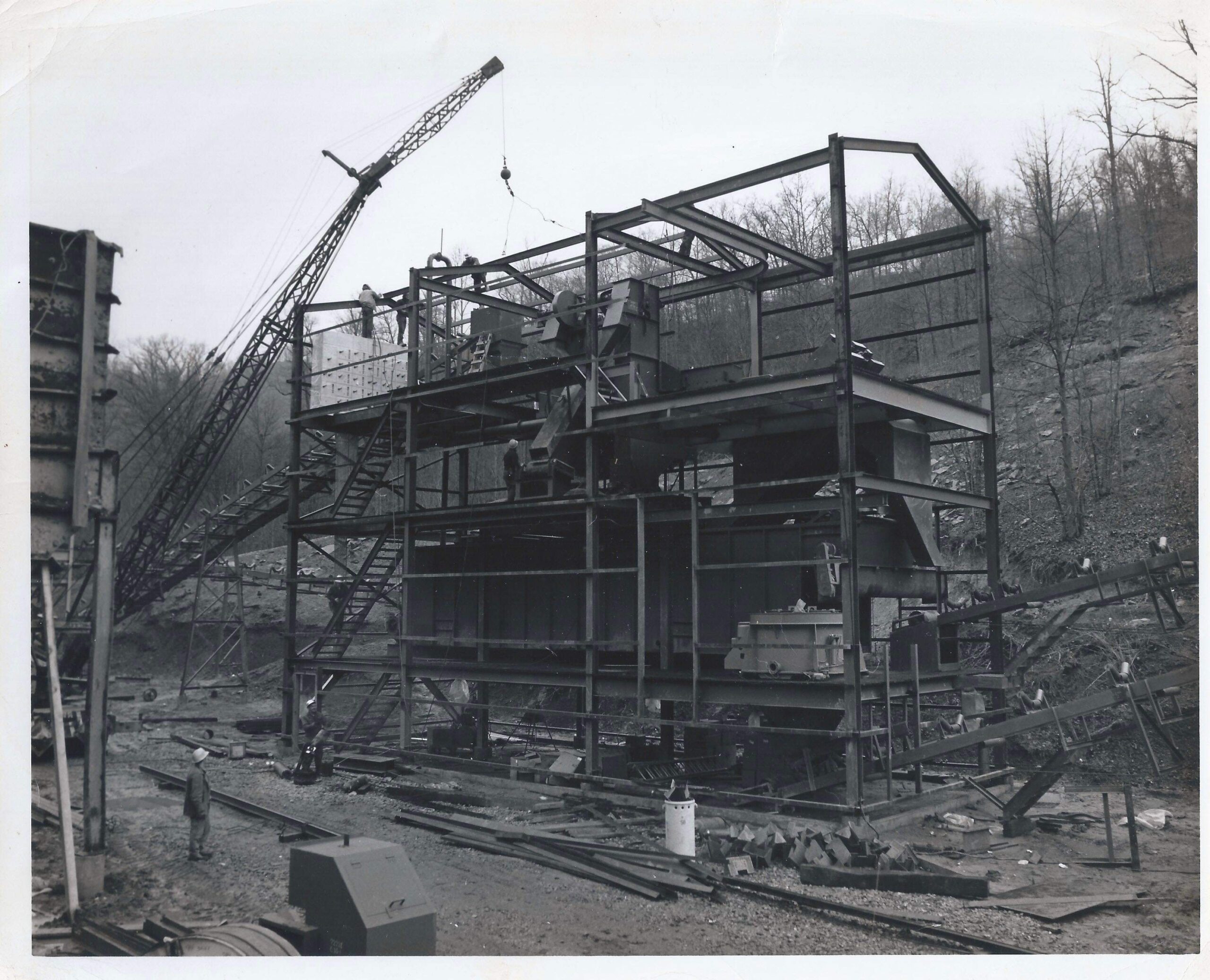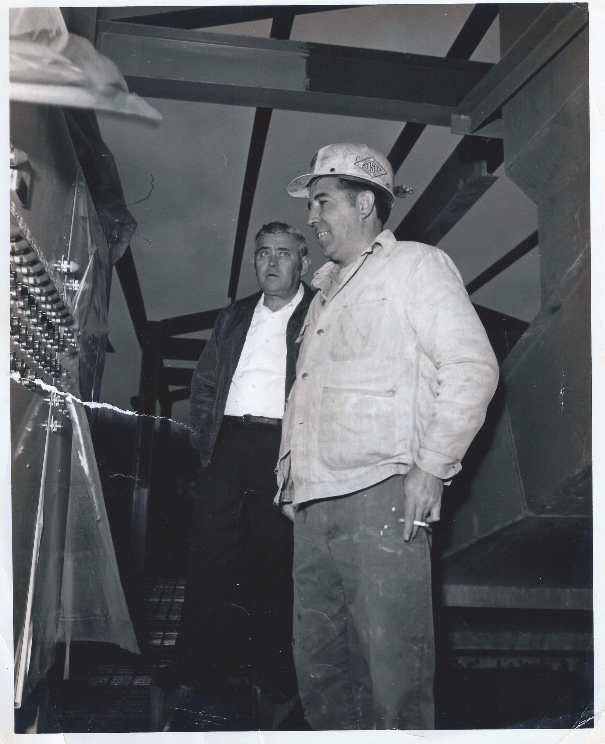 Victor Sword is inspecting the control panel at his newly constructed prep plant on Little Robinson Creek. The Man on the right is Arron Jones the Prep Plant Superintendent.