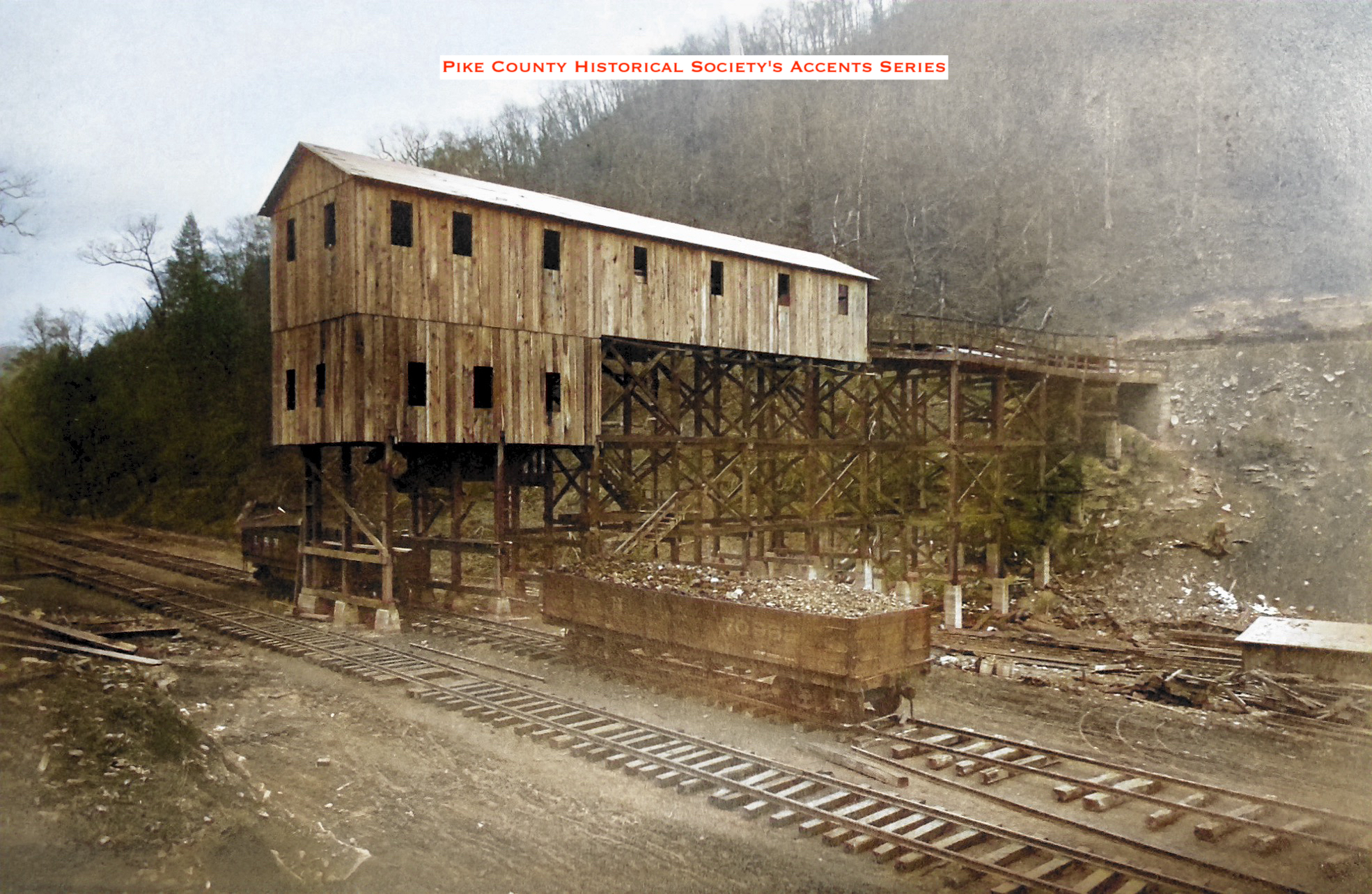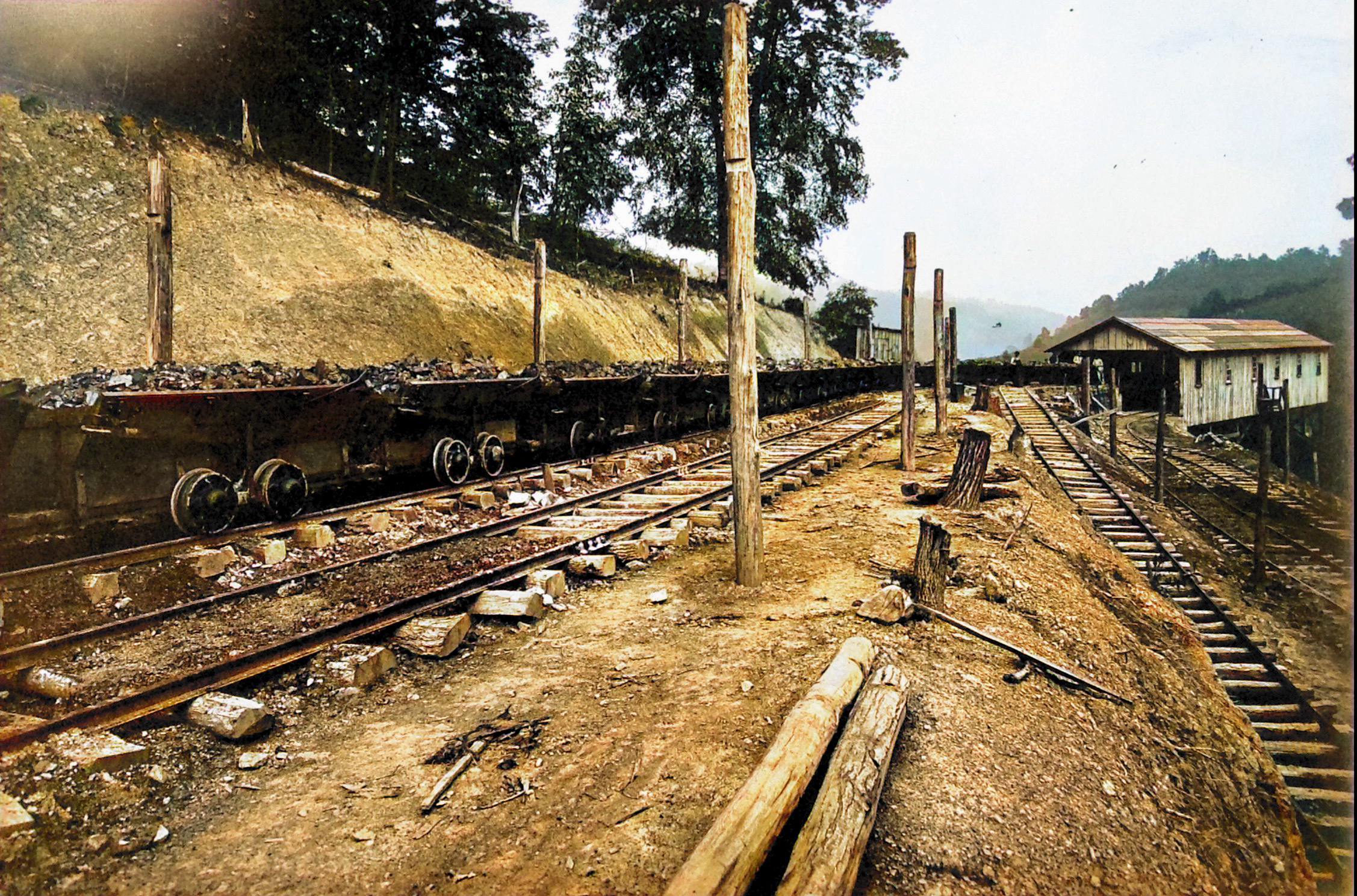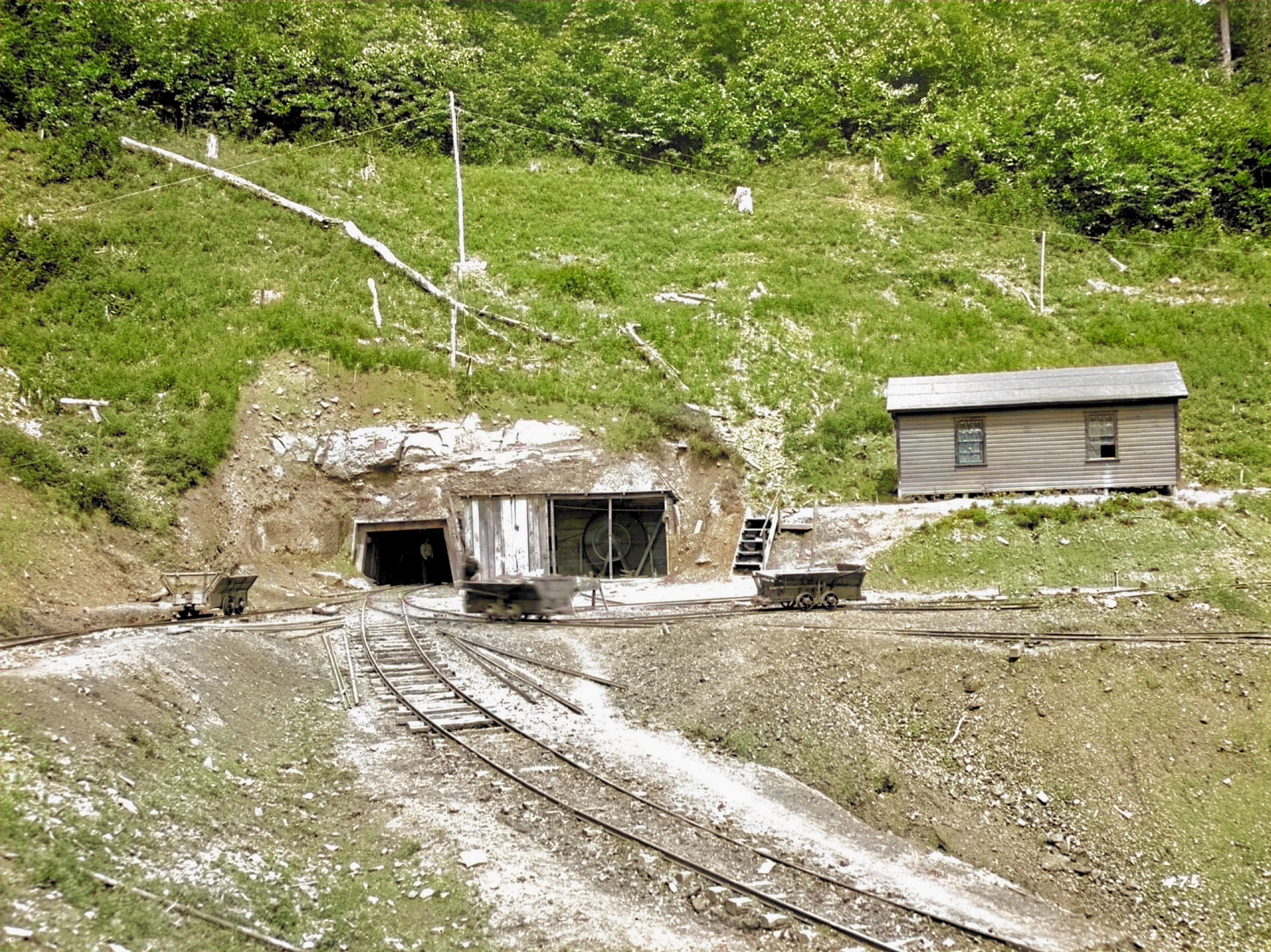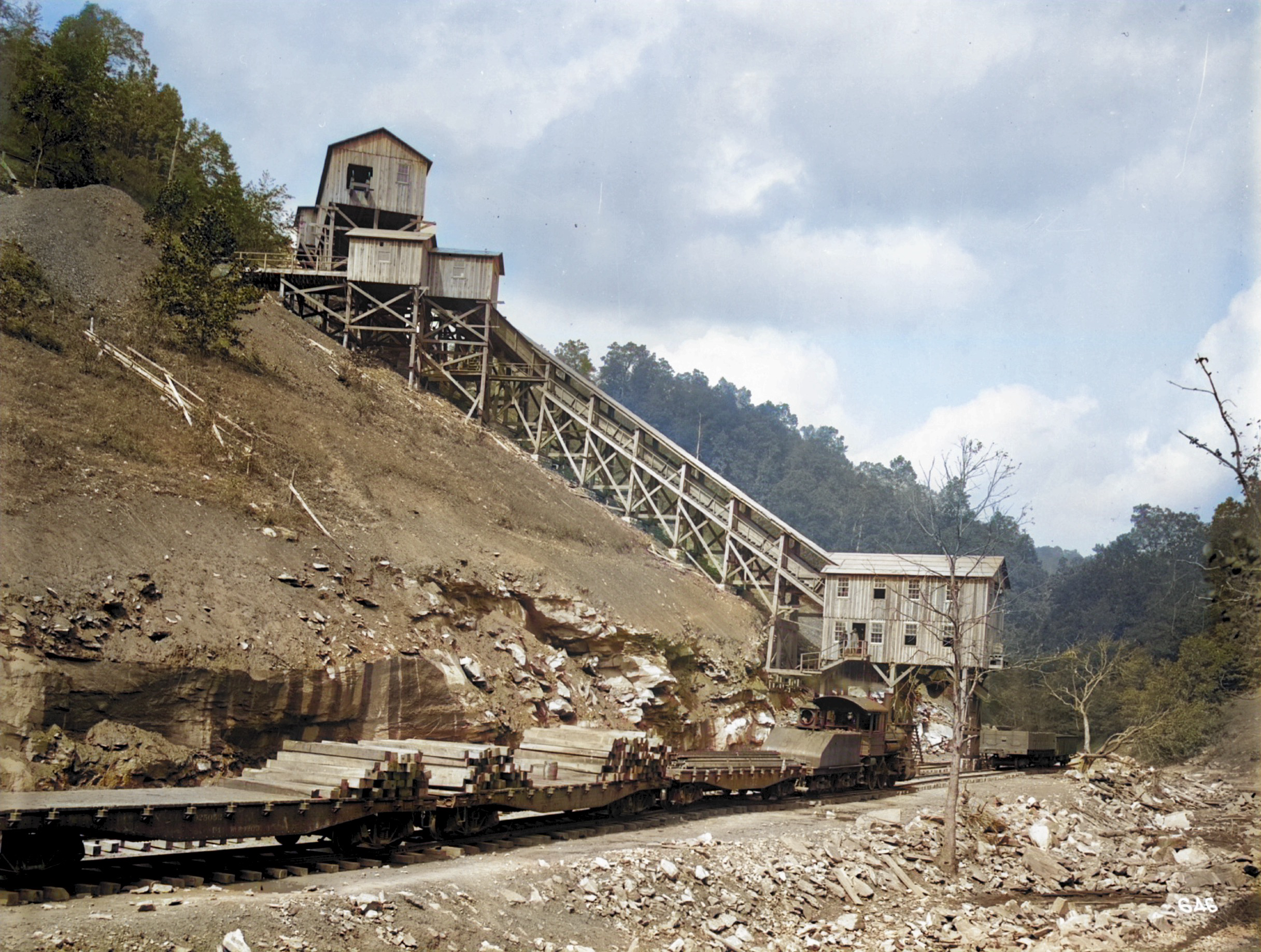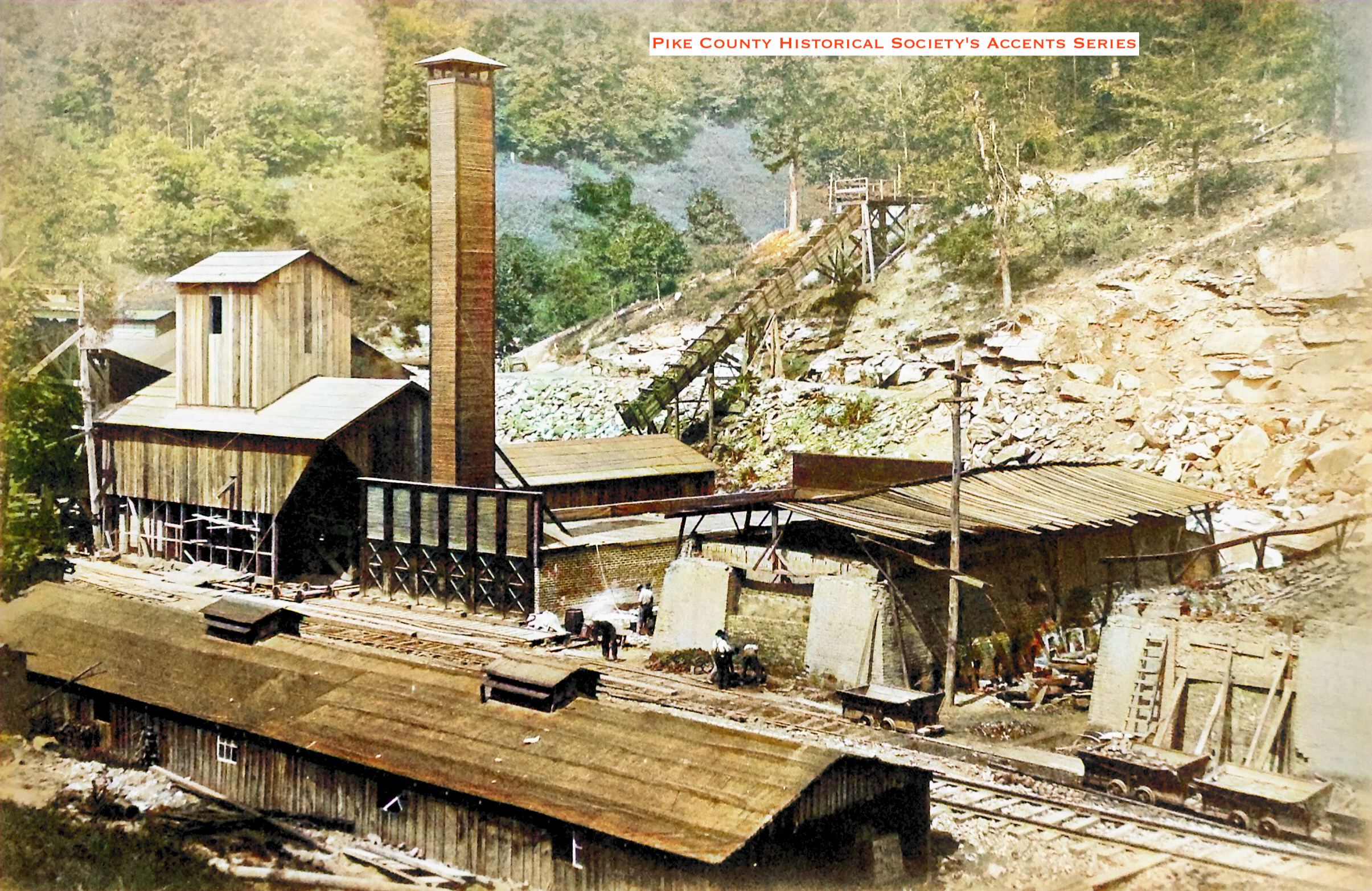 No. 215 Tipple Shown with Slate Trolly going to the Top of the Ridge