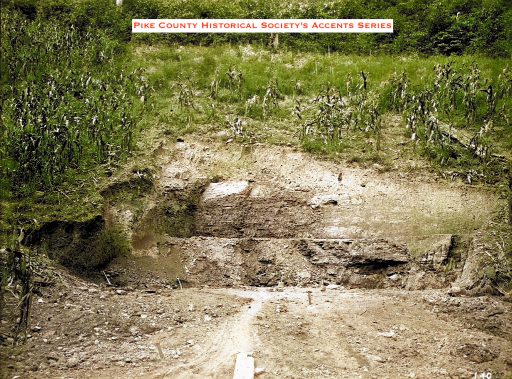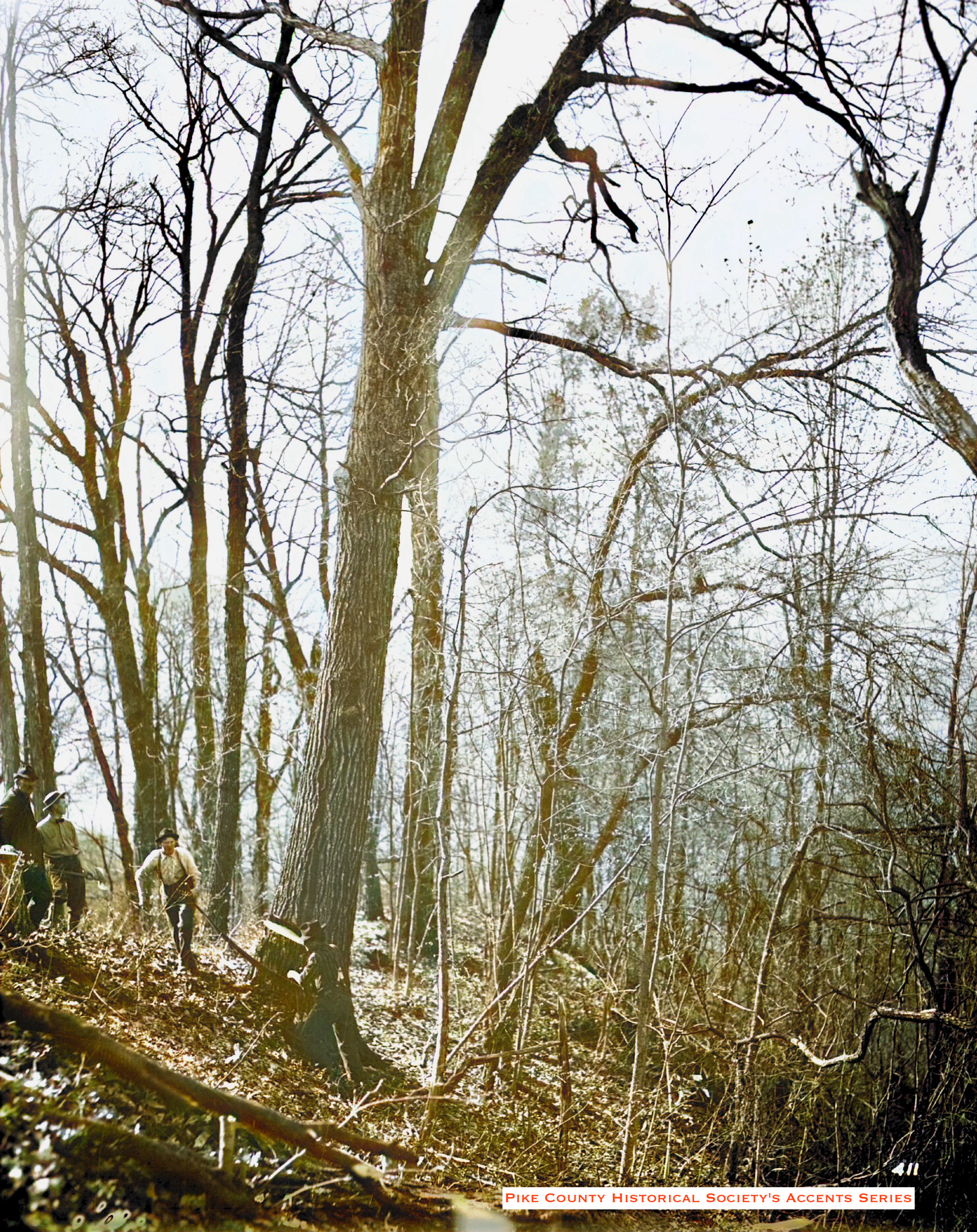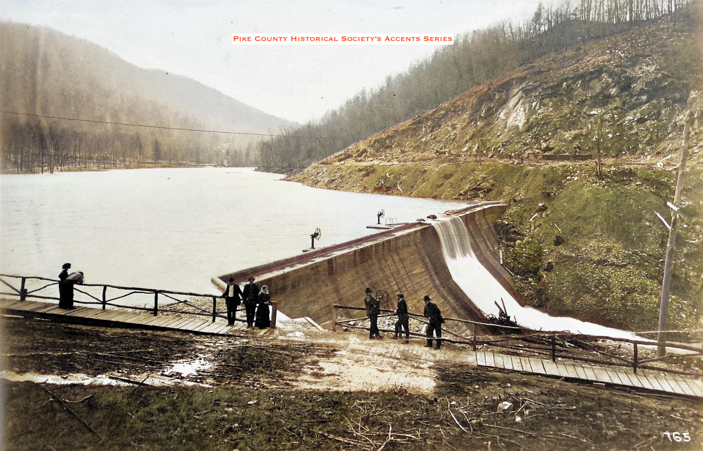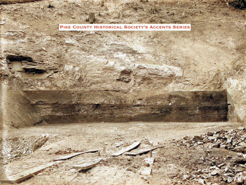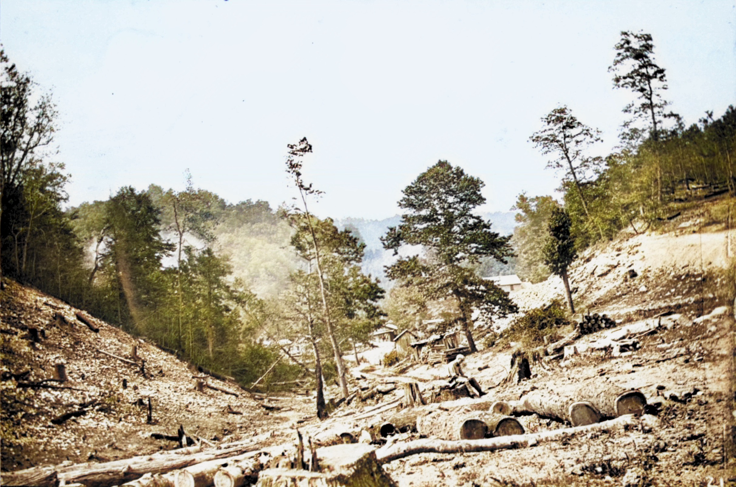 Future site of The Elkhorn Dam. The State Road is behind the man setting on stump.