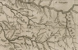 On June 25, 1780, John Breckinridge commanded a company of Virginia militia guarding the lead mines at Fort Chiswell. In a letter of that date to Col. William Preston, his uncle and commanding officer, he related news of some Tory activity in the area of New River and the threat of further trouble. He continued: “There was also a Captain of the Militia taken by them [Tories] by the name of Swift who brings the same accounts, adding that there was a good many British officers among them but could not ascertain the number.” Swift was a fitting figure upon which to base the journal’s narrator and main character, but Flower would never do. That name would have been ridiculed by the public. A more appropriate appellation for the era was Jonathan, or John, as in John Breckinridge or John Filson or the already-popular Jonathan Swift. Whoever wrote the Swift journal was probably familiar with the Pownall Evans map, originally issued in 1755 then corrected and reprinted in 1776. On the later version, north of the headwaters of the Holston River and just south of the source of the Bluestone River is depicted along a mountain pass “A Remarkable Rock.” In the Swift journal, one passage states: “Between the small lick and the furnace is a remarkable rock. . .” That the Swift journal and the most popular map of the day would use the same adjective to describe points of reference is, well, remarkable. Published maps of the time were of large format and not carried by explorers and hunters, but were used primarily by land speculators, government entities, and universities such as William and Mary where John Breckinridge was educated.