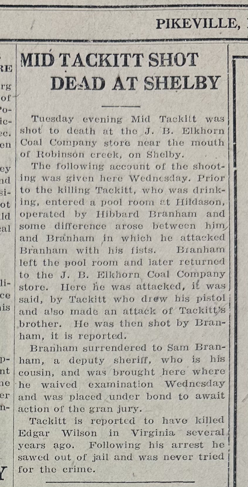 Located on the S. V. & E. Railway. Operating the lower Elkhorn seam, 54 inches. Employing about 65 men. Electric equipment. Visited January 9, 1922. Found in fair condition. This report was taken from a 1922 Kentucky State Mine Report.