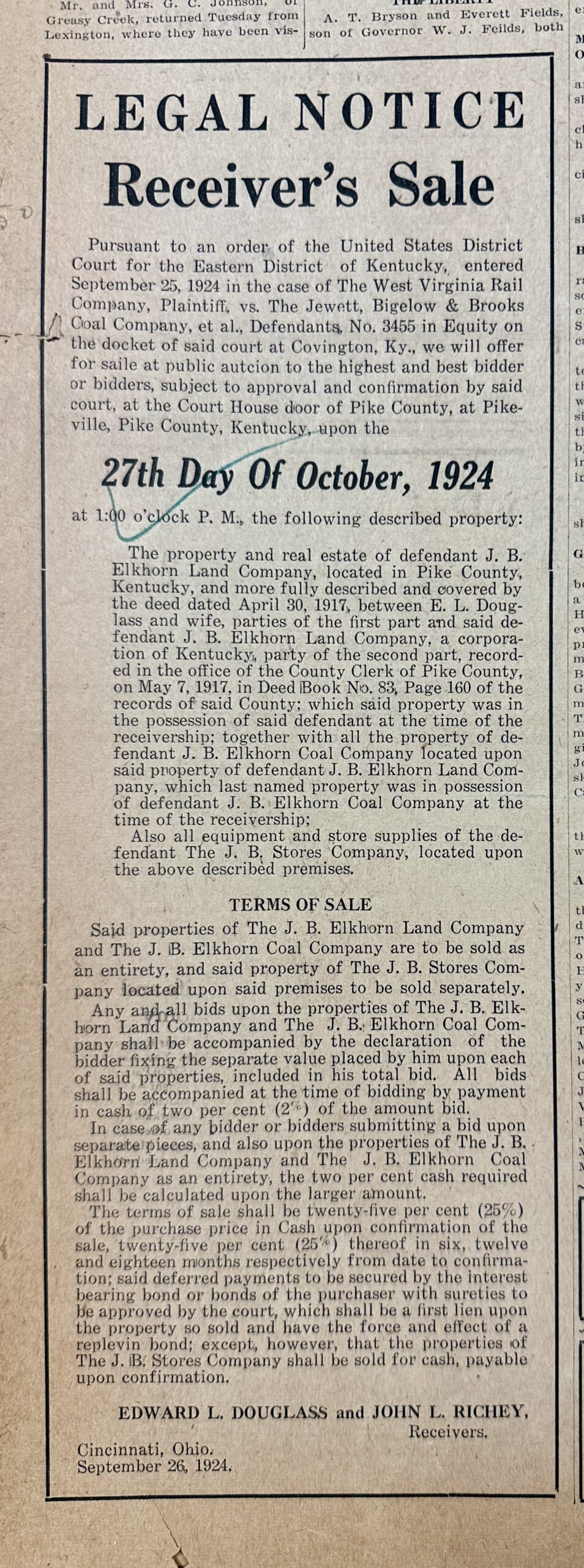 J. B. ELKHORN COAL COMPANY, Douglas, Hildason, Ky.