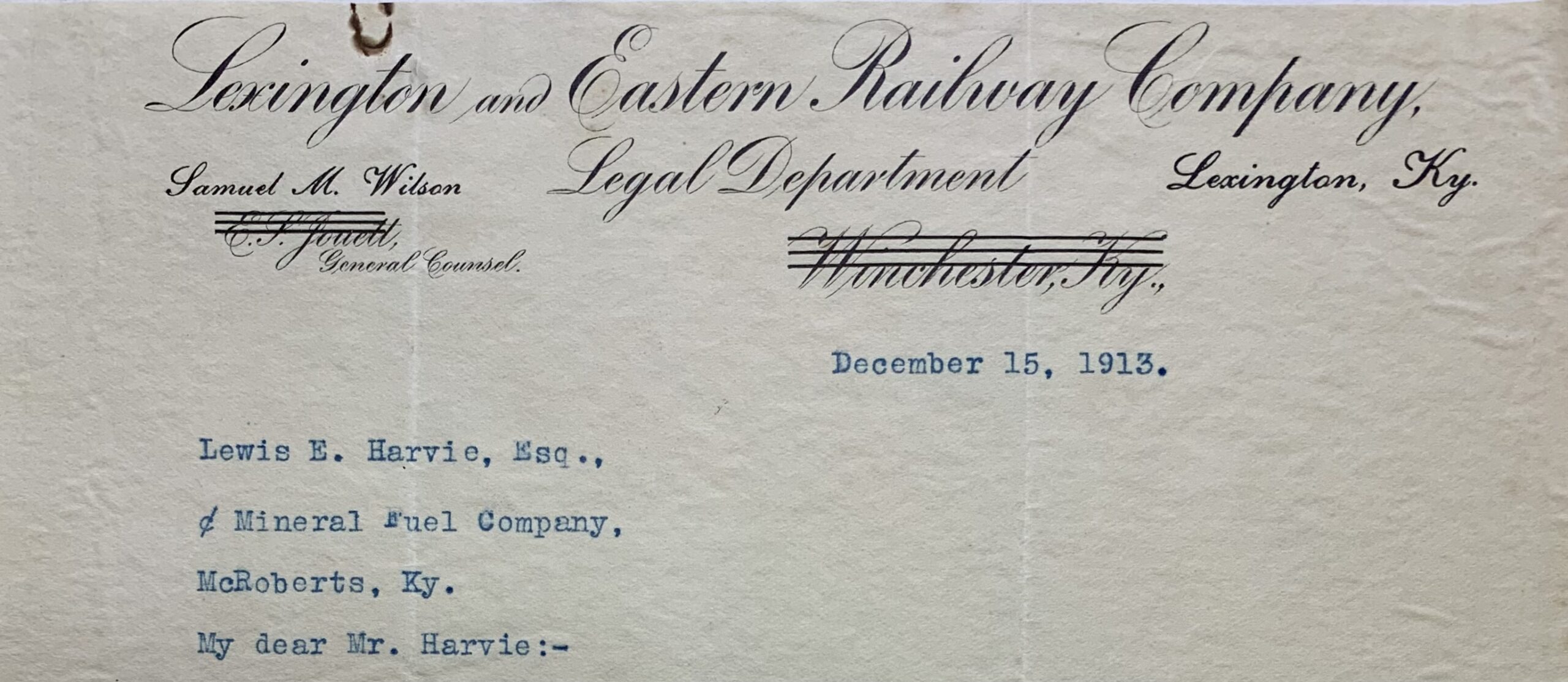 The Lexington & Eastern Railroad has had been in operation since January, 1913, its new extension from Jackson to McRoberts. This branch passes through the 4,500 acres under lease by the Elk Horn Mining Corporation, which made it possible for immediate production from these lands. The geology of the Elk Horn Coking Coal region, of which these leases are a part, is of the simplest character; no faults nor irregularities have been discovered, and in all probability there are none. The stratifications are nearly flat, and the coal seams, of which there are several, are practically all above drainage.