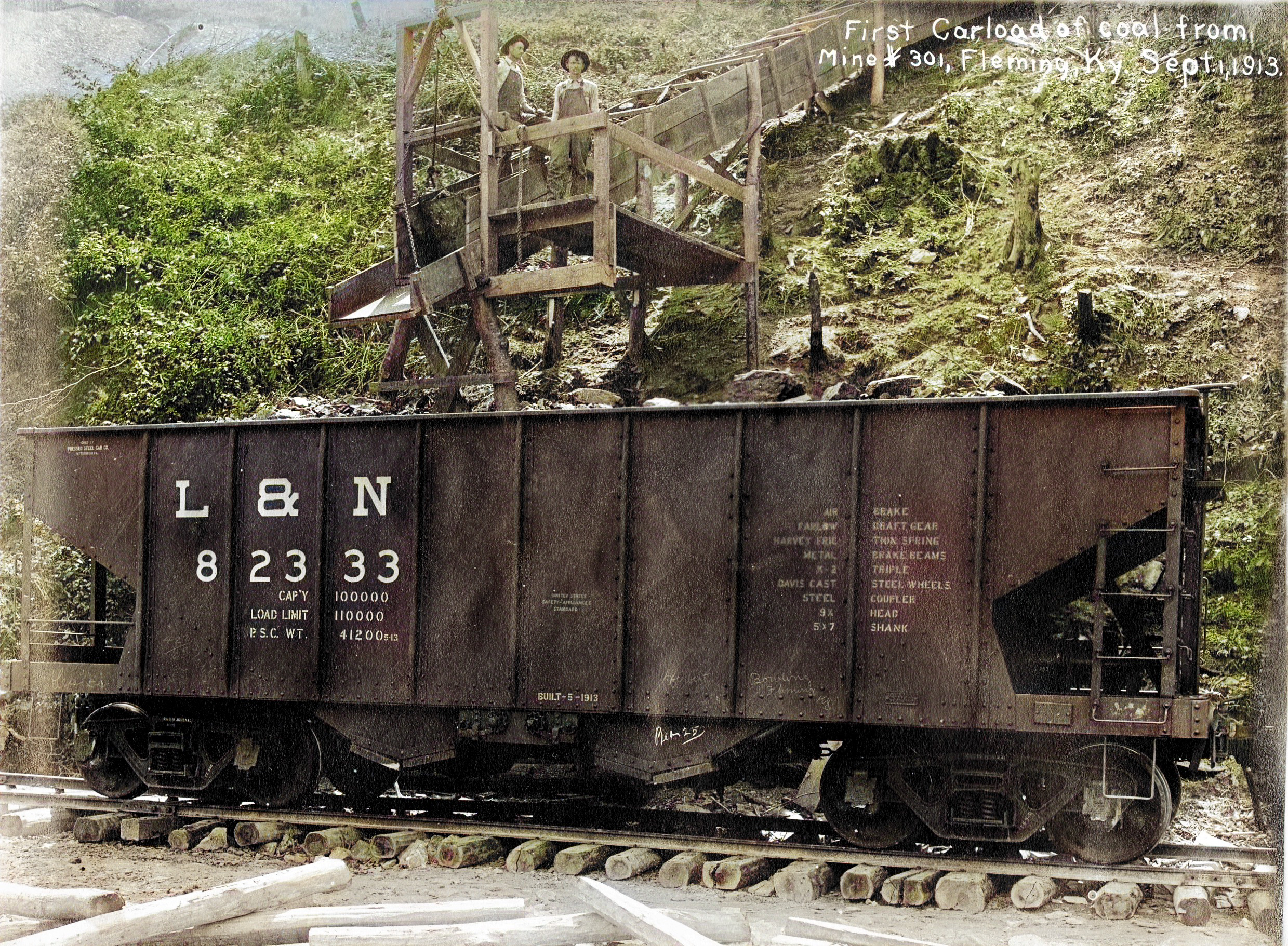 Tipple No. 328. First Coal Loaded in Railroad Cars, April 8, 1914