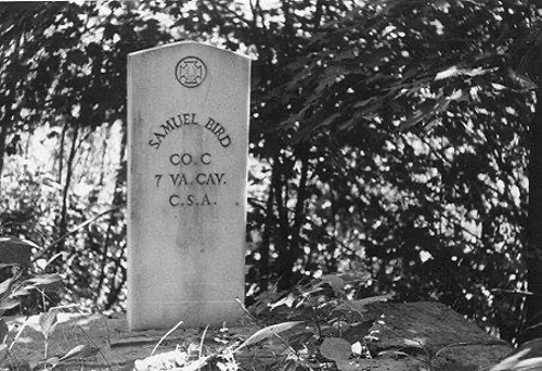HEADSTONE OF SAMUEL BIRD (?), KILLED 12/4/1863 IN THE GAP OF MORGANS MOUNTAIN