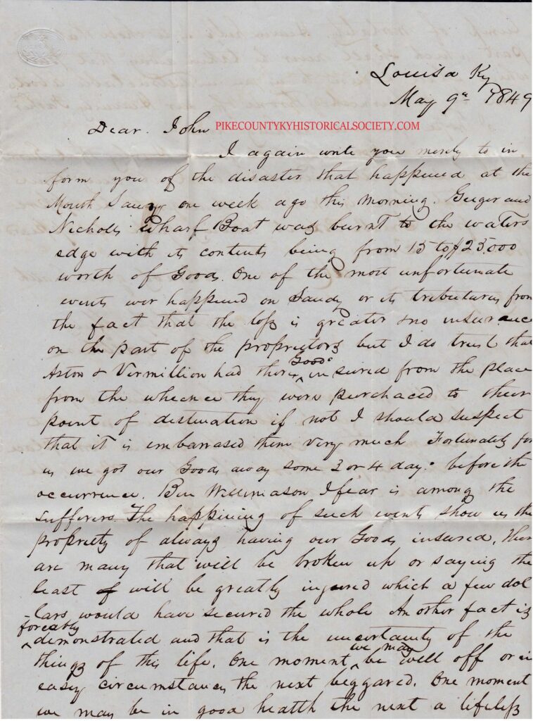 General John B. Floyd at the time was making a sweep with his Virginia State Line cavalry down the West Virginia side and back up the Kentucky side of the river. Floyd’s cavalry commander, Colonel John Clarkson, reported the boats coming up Levisa Fork. Floyd then dispatched several hundred mounted men through the mountain gap onto Brushy Creek, then down to Prestonsburg. The Confederate riders attacked the boats’ guard at daybreak and spent the day unloading the cargo, packing their mounts, and finally burning what they could not carry.