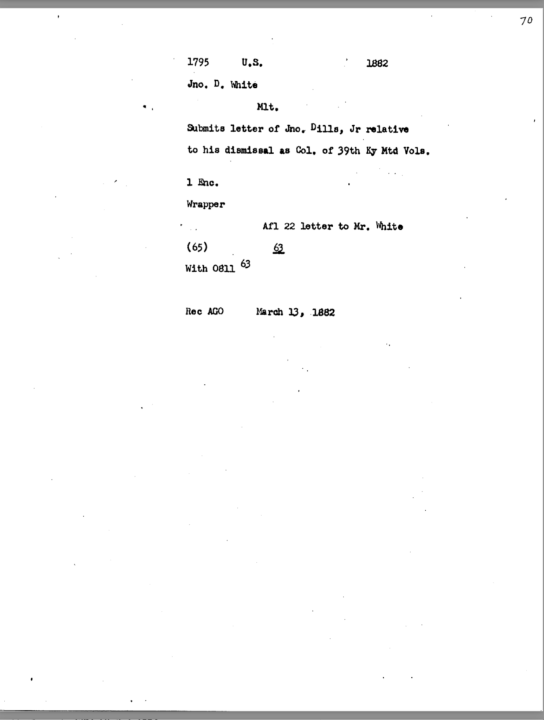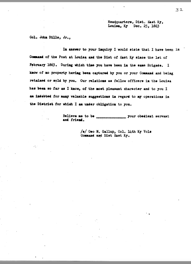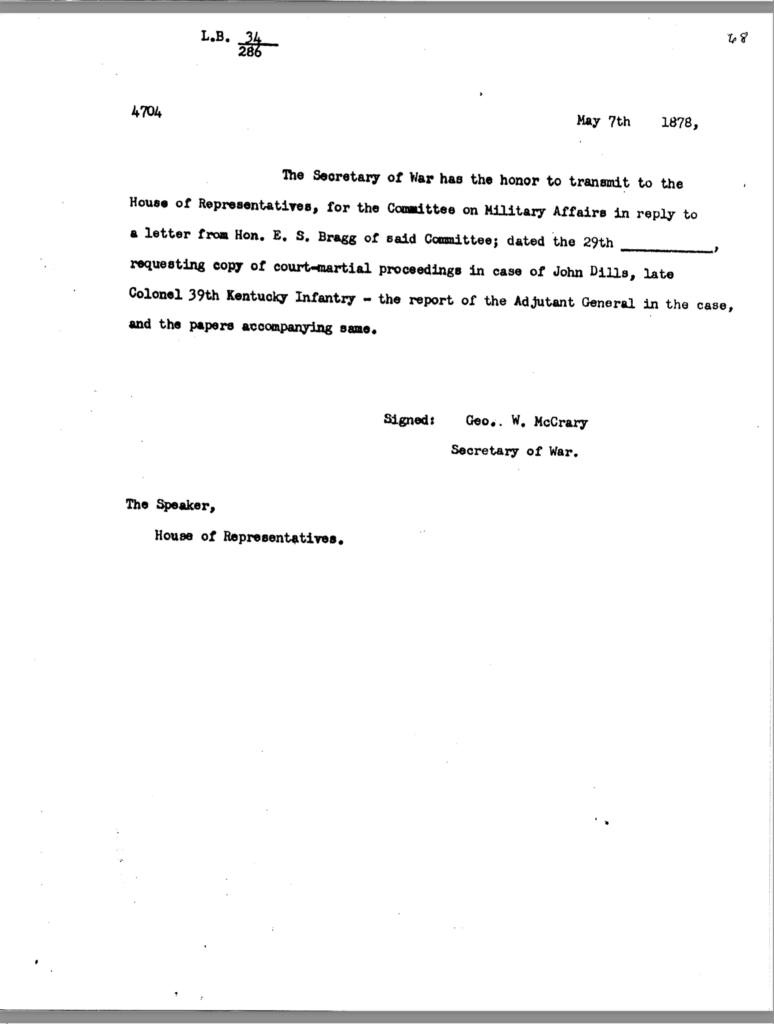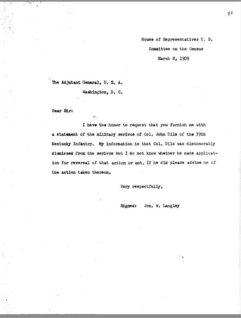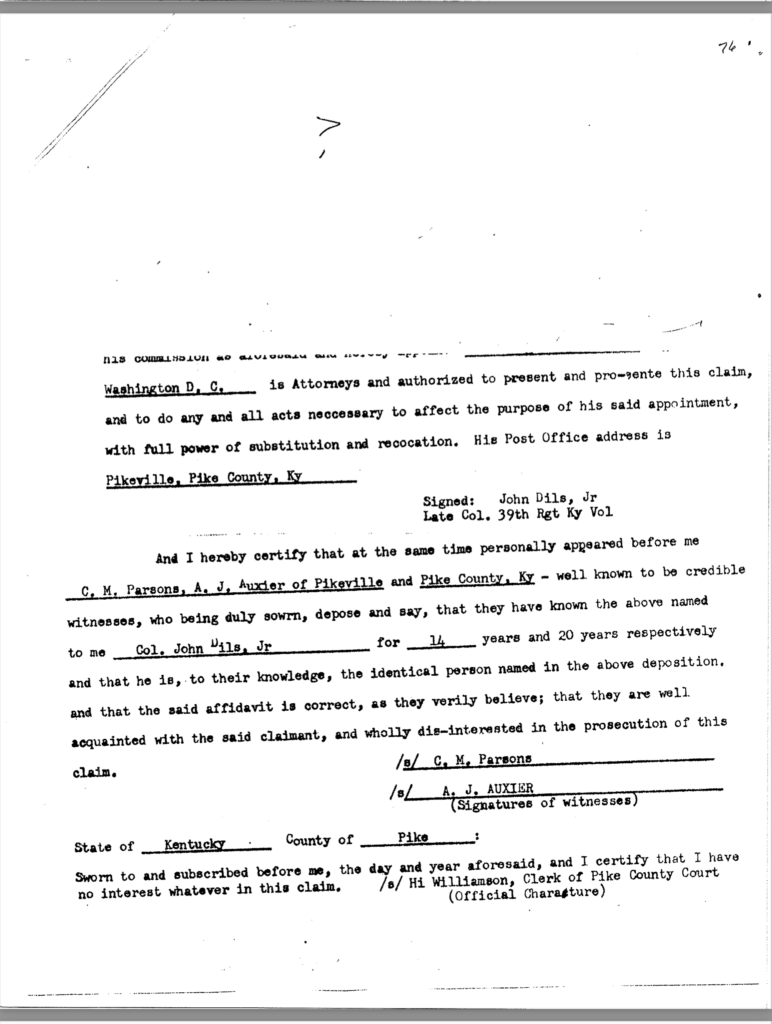 Included in this section is an 80-page transcription of Colonel Dils’ court martial file. It was gifted to me years ago by Nancy Forsythe of Pikeville. All markings and notations are by previous owners.
