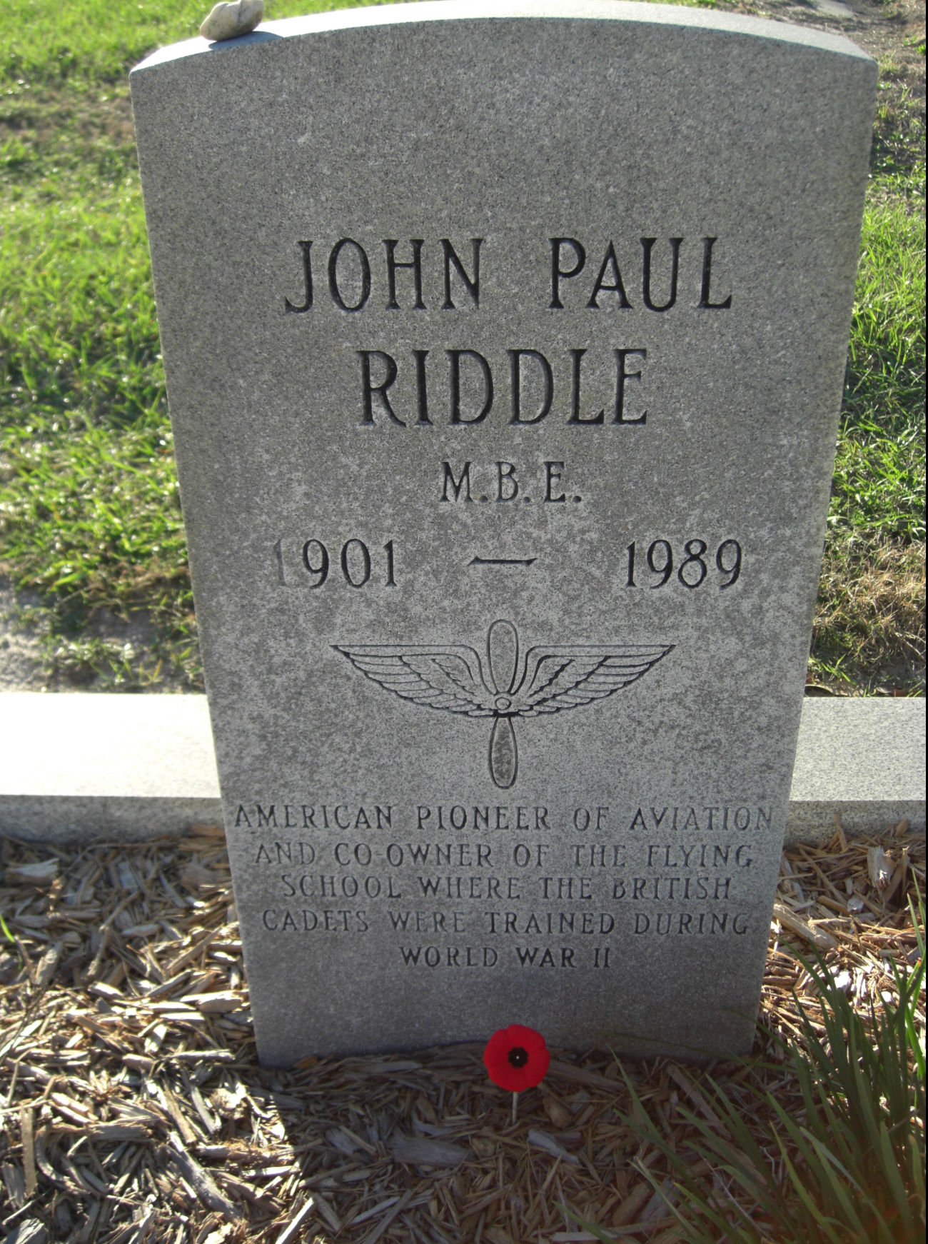 John Paul Riddle retired in the 1960’s and died on 6th April 1989 at Coral Gables, Florida. He is remembered by a marker along with his RAF cadets at Oak Ridge Cemetery, Arcadia, Florida.
