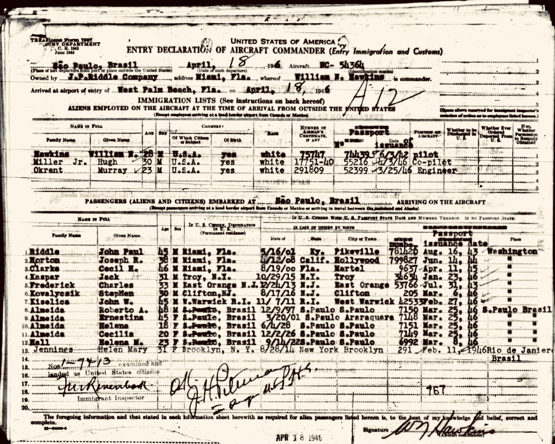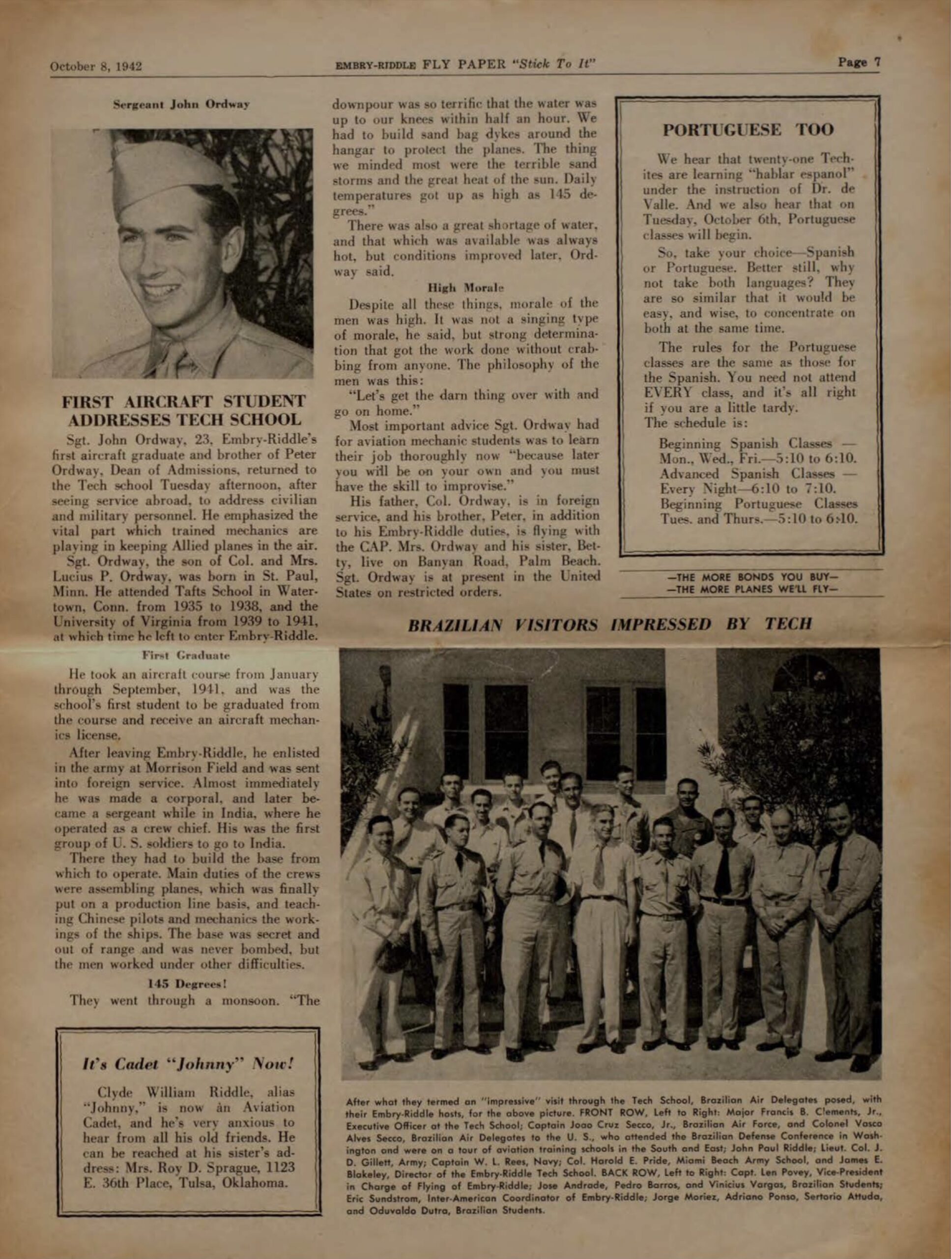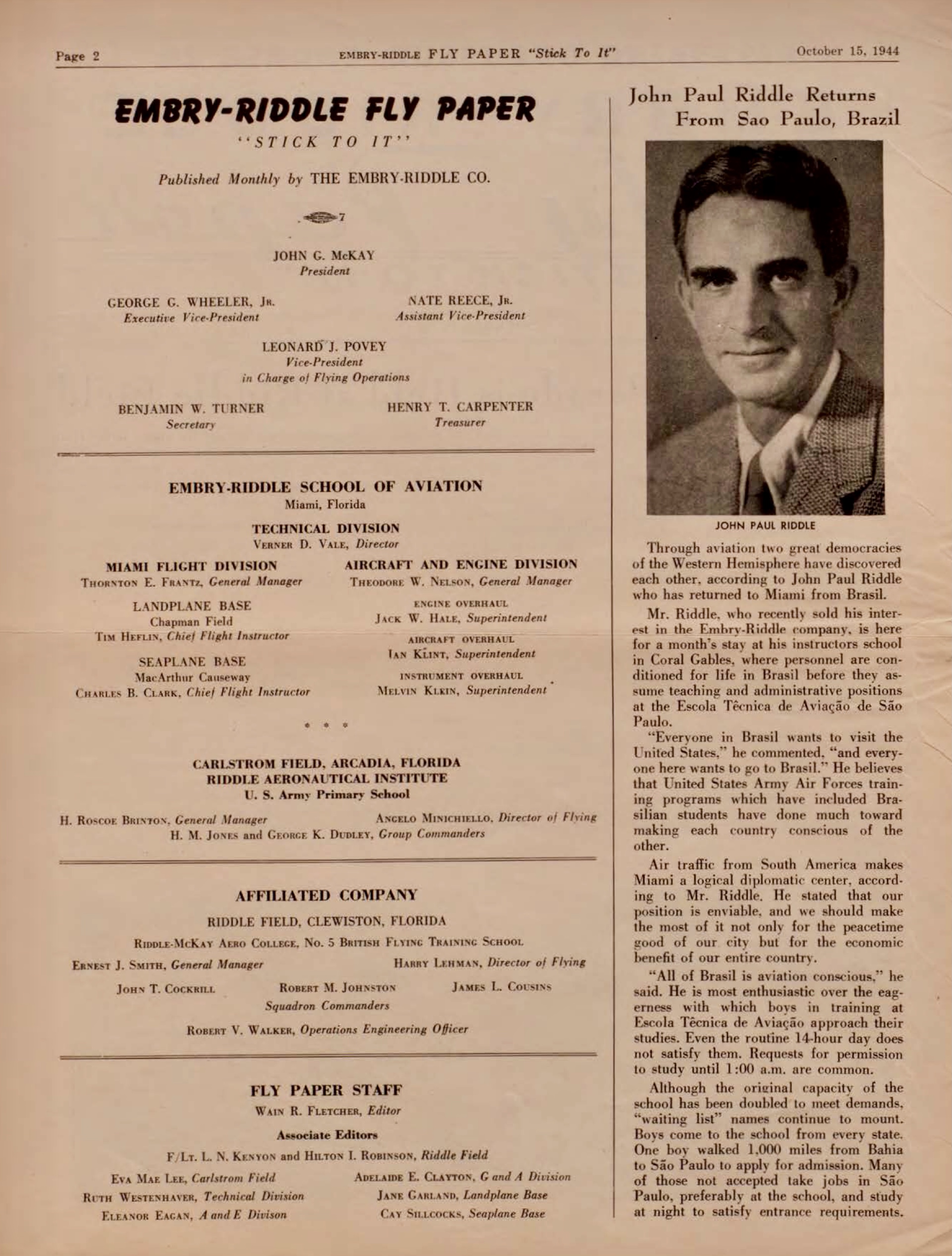 Consequently a Brazilian flying school was set up in 1943 and in 1945 the company relocated American transport instructors to Brazil. This was operated by Riddle Airlines, an air cargo carrier which operated from Miami.