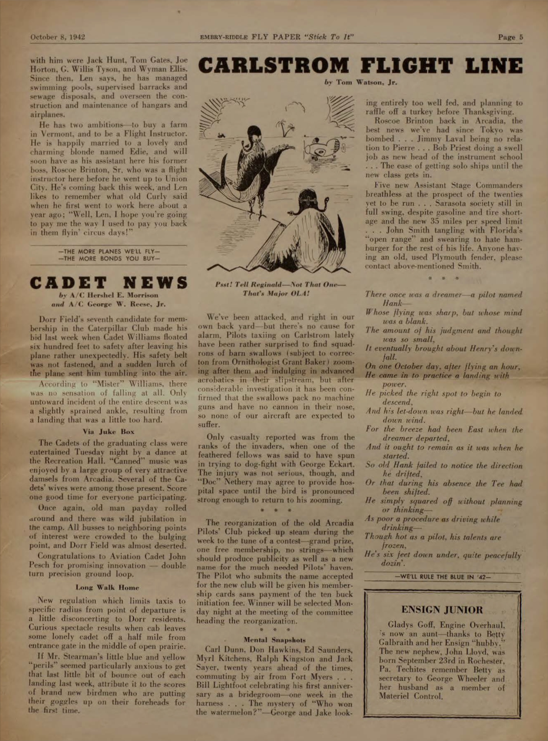 With the introduction of training for RAF pilots, owing to the Lend Lease Scheme, Riddle built and set up the 5 British Flying Training School at Clewiston, Florida, named Riddle Field.