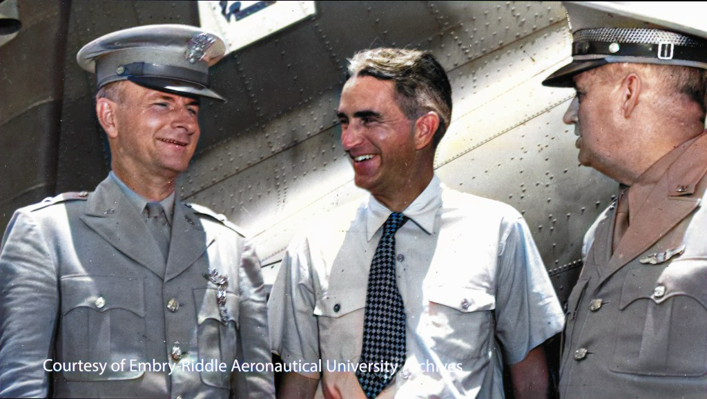Formerly a barnstormer and flying instructor for stunt pilots, John Paul Riddle was a pioneer in aviation history taking the controls only 17 years after the Wright brothers’ first flight. His career in aviation had taken him from the Embry-Riddle Flying School in 1926, winning the first Federal air mail contracts, to globe-trotting with Howard Hughes and the Prince of Wales.
