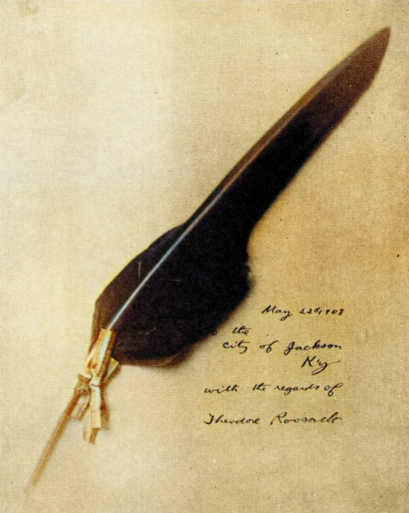 Eagle’s quill pen with which President Roosevelt signed the bill for a Federal Court at Jackson, Ky., which he presented to the people of that city through the author.