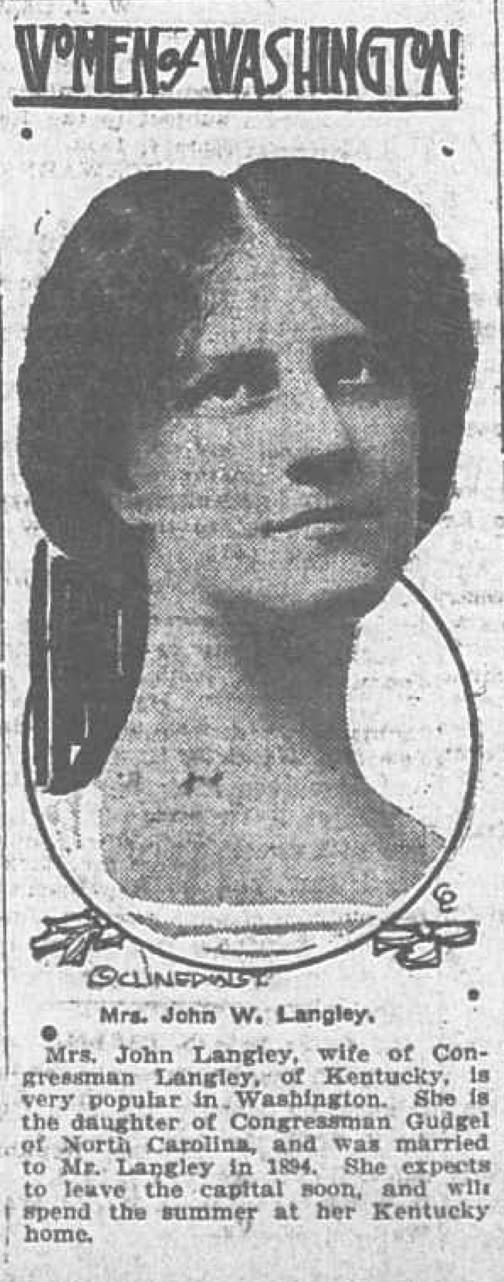 John W Langley, a Junior Congressman from Kentucky is a standout in the National Press Newspapers 1909.