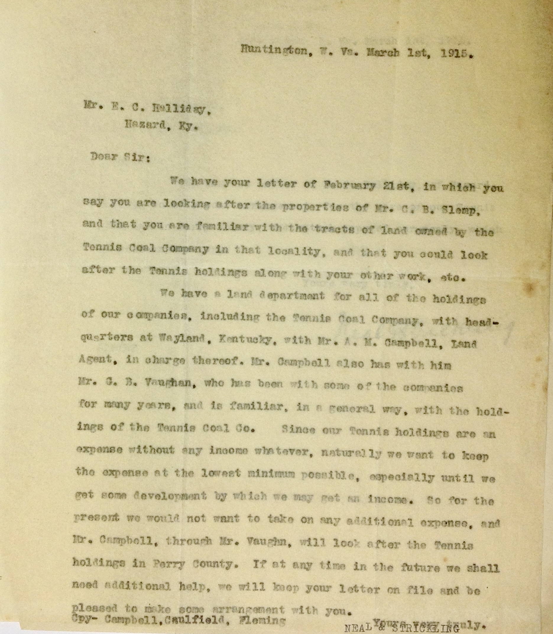 Photo taken September 1913, soon after construction of the unincorporated town of Weeksbury, Kentucky. Campbell Bascom Slemp, second from the right, was touring Left Beaver Creek in Floyd Co., in John W Langley’s 10th US Congressional District. Slemp was elected to his father’s old Virginia 9th District from Big Stone Gap, serving from 1907 until March 3, 1923. CB Slemp was in partnership in several Mineral Holding Companies with John CC Mayo in Letcher, Knott and Perry Counties.