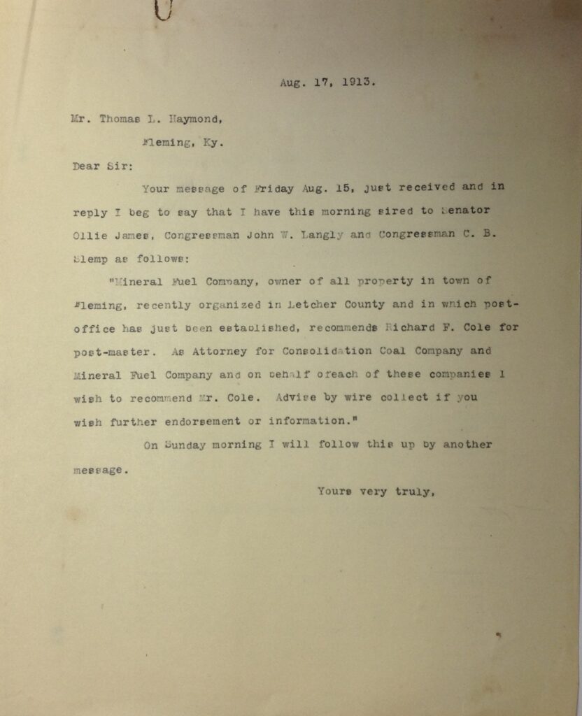 C.B. Slemp knew the negative impacts that John W. Langley could deliver with his Progressive Republican ideals, his impact would not set very well the Conservative Democrats running the large a corporation and being a Conservative Republican from Virginia’s 9th District and Kentucky Corporate investments, and then a sitting U.S. Congressman. John Langley had a strong bond with the common man that fueled the labor force in Eastern Kentucky. The bottom-line was that John W Langley would cut into corporate profits with his Progressive thoughts.