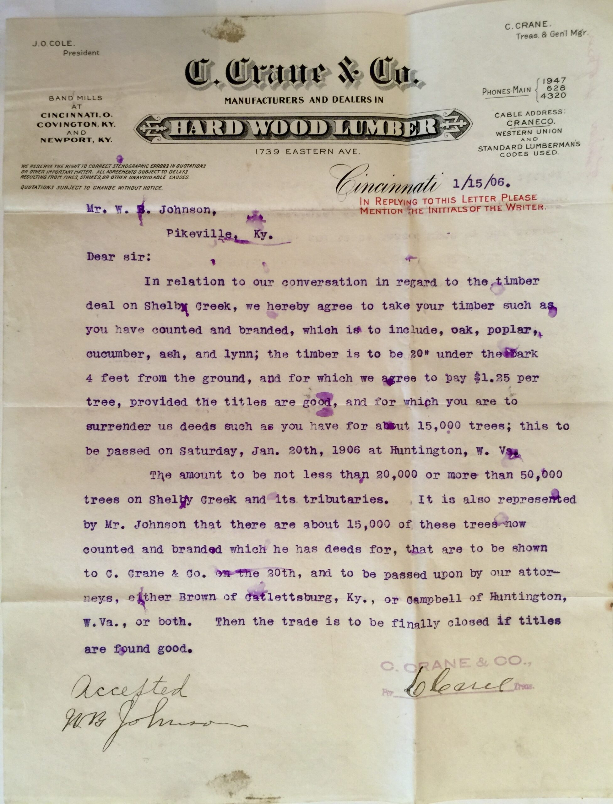William Burnside Johnson from 1906 until his death in 1914 was the largest timber contractor for Cole & Crane. He had a close relationship and was personal friend of John W Langley.