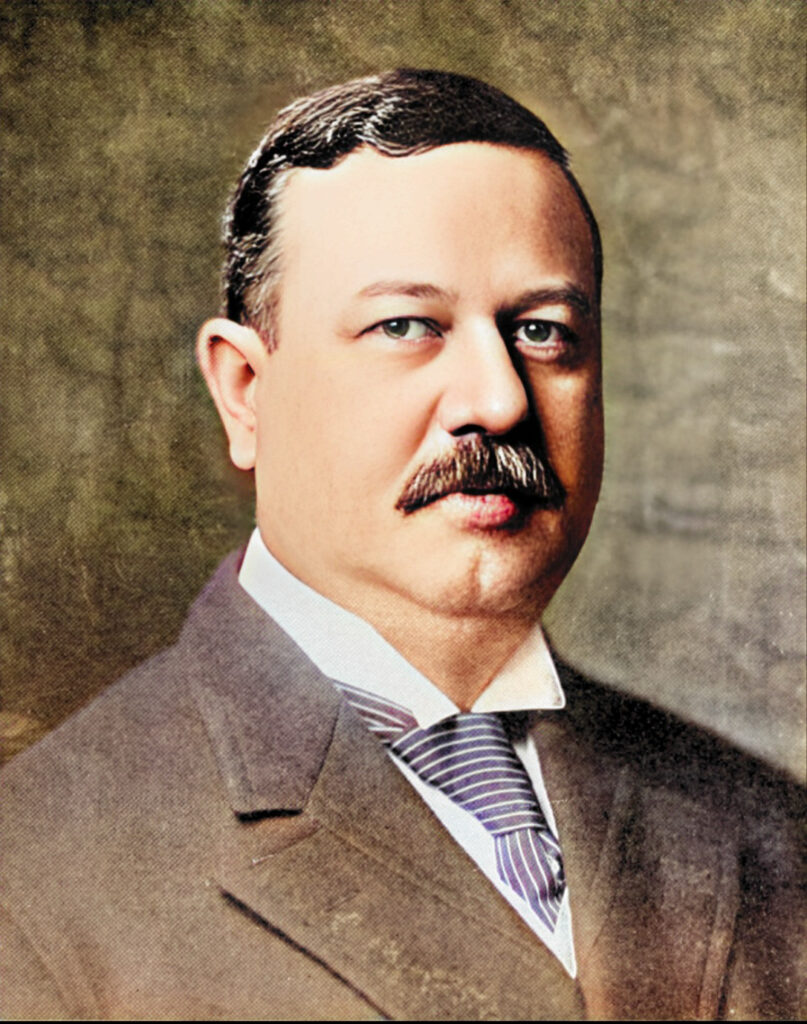 Favorite photograph of Theodore Roosevelt, presented to Mrs. Katherine Langley and John Langley by Teddy, March 3, 1909, the day before he retired from the Presidency. His cordial greetings, not shown, were written at the foot of the photo. Color Accents added by the Pike County Historical Society