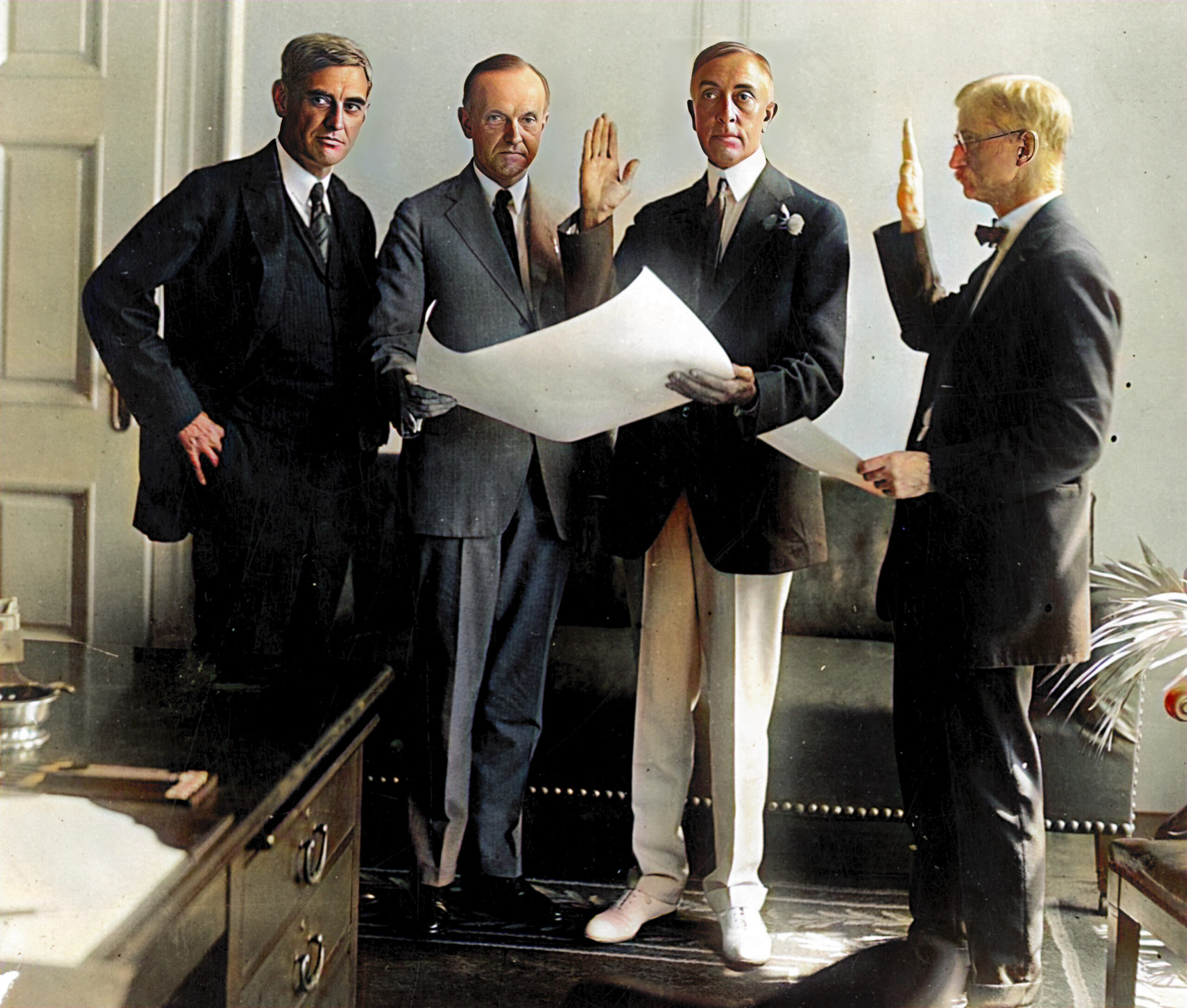 Pictured above is Campbell Bascom Slemp being sworn in as Secretary to the president Calvin Coolidge. President Calvin Coolidge appointed Slemp as his secretary on August 14, 1923. Slemp served as Secretary under Calvin Coolidge September 4, 1923, until March 4, 1925