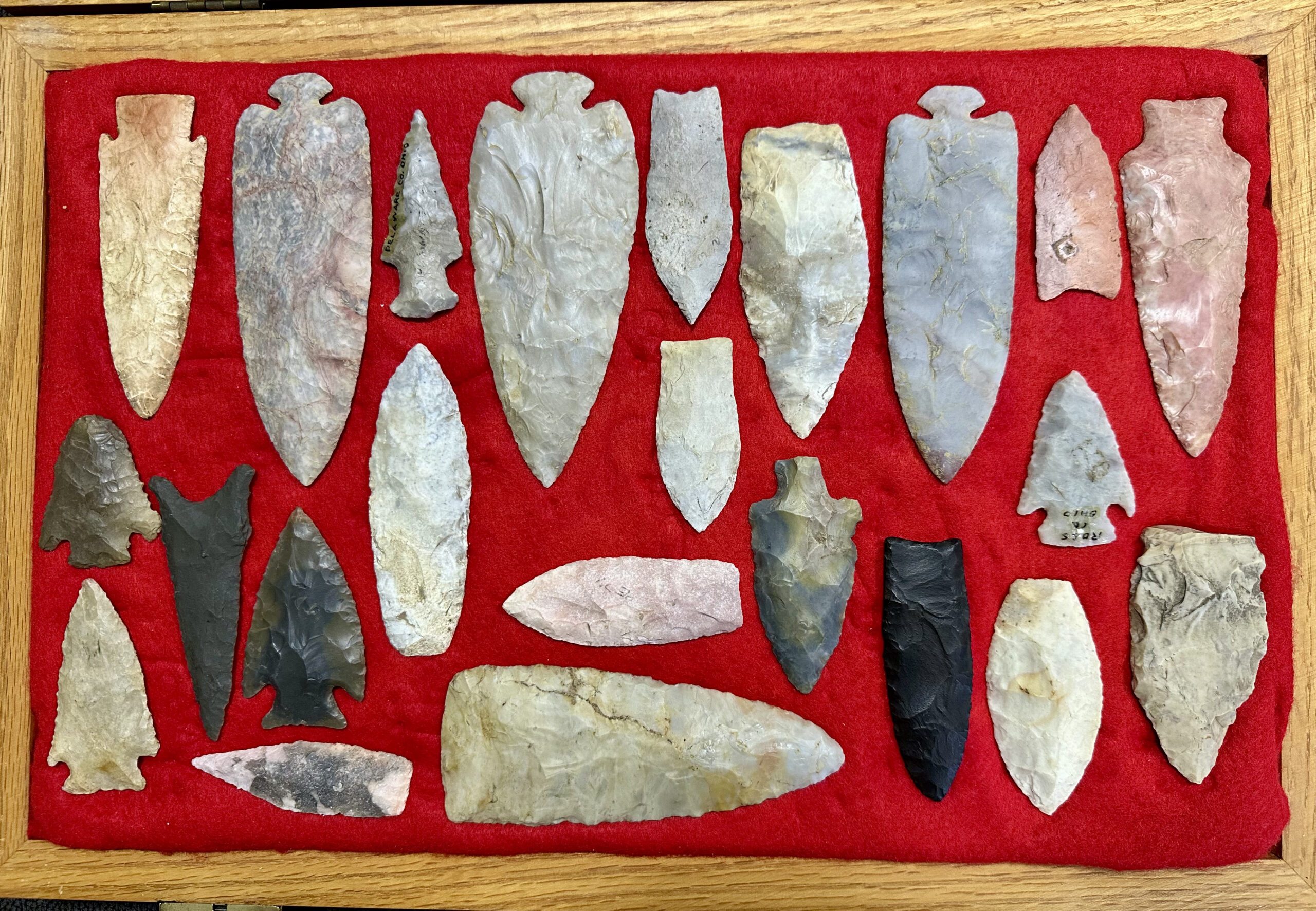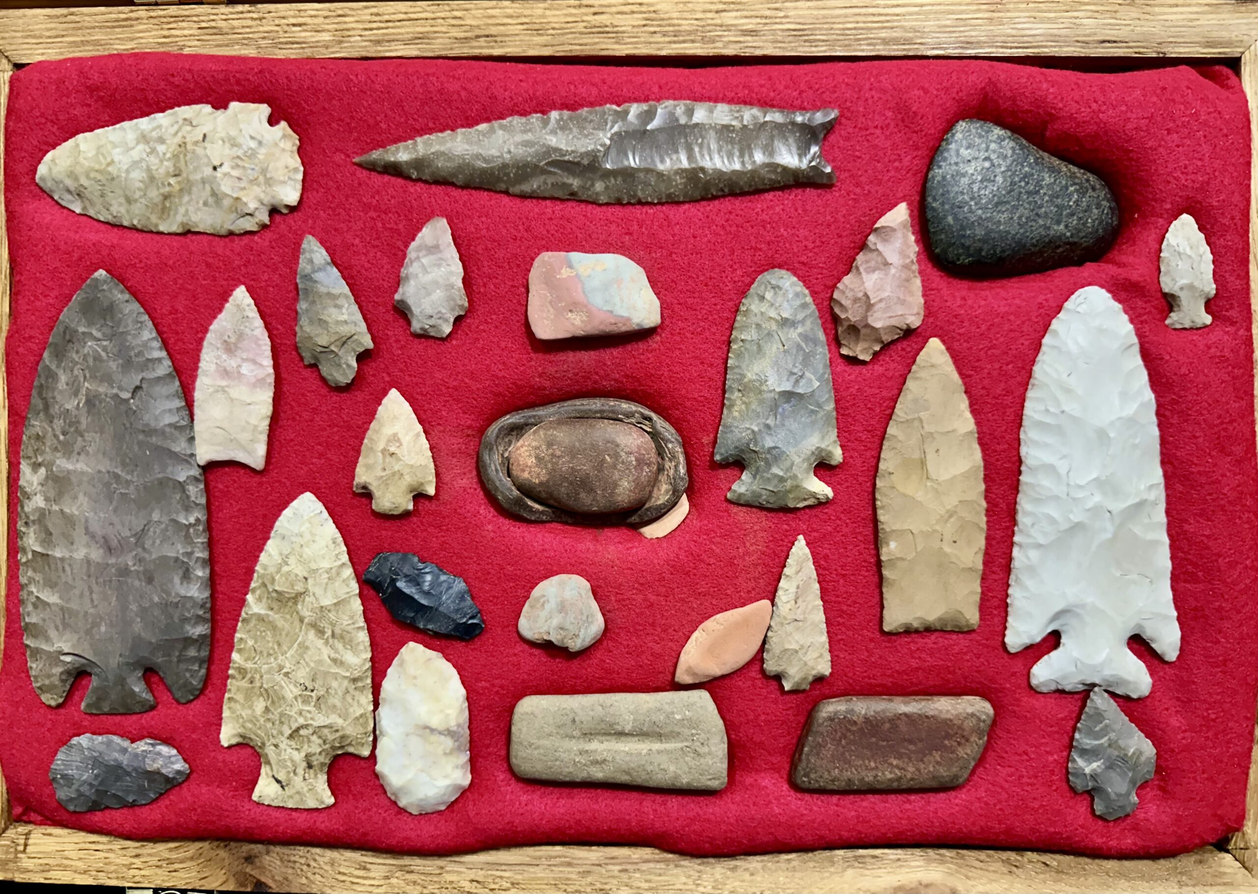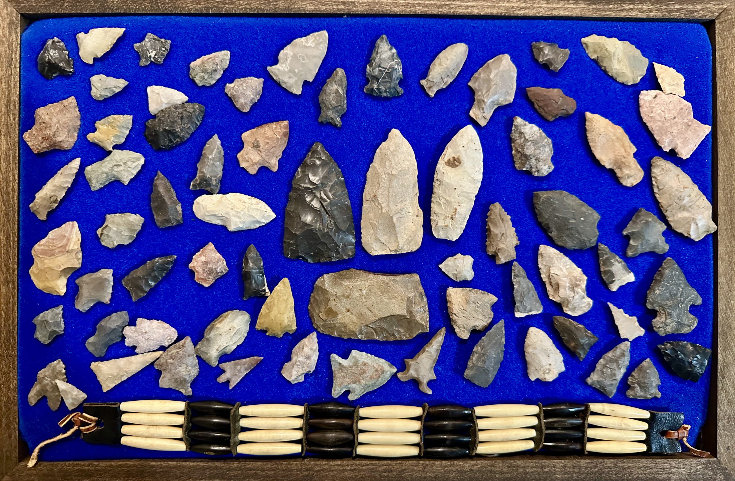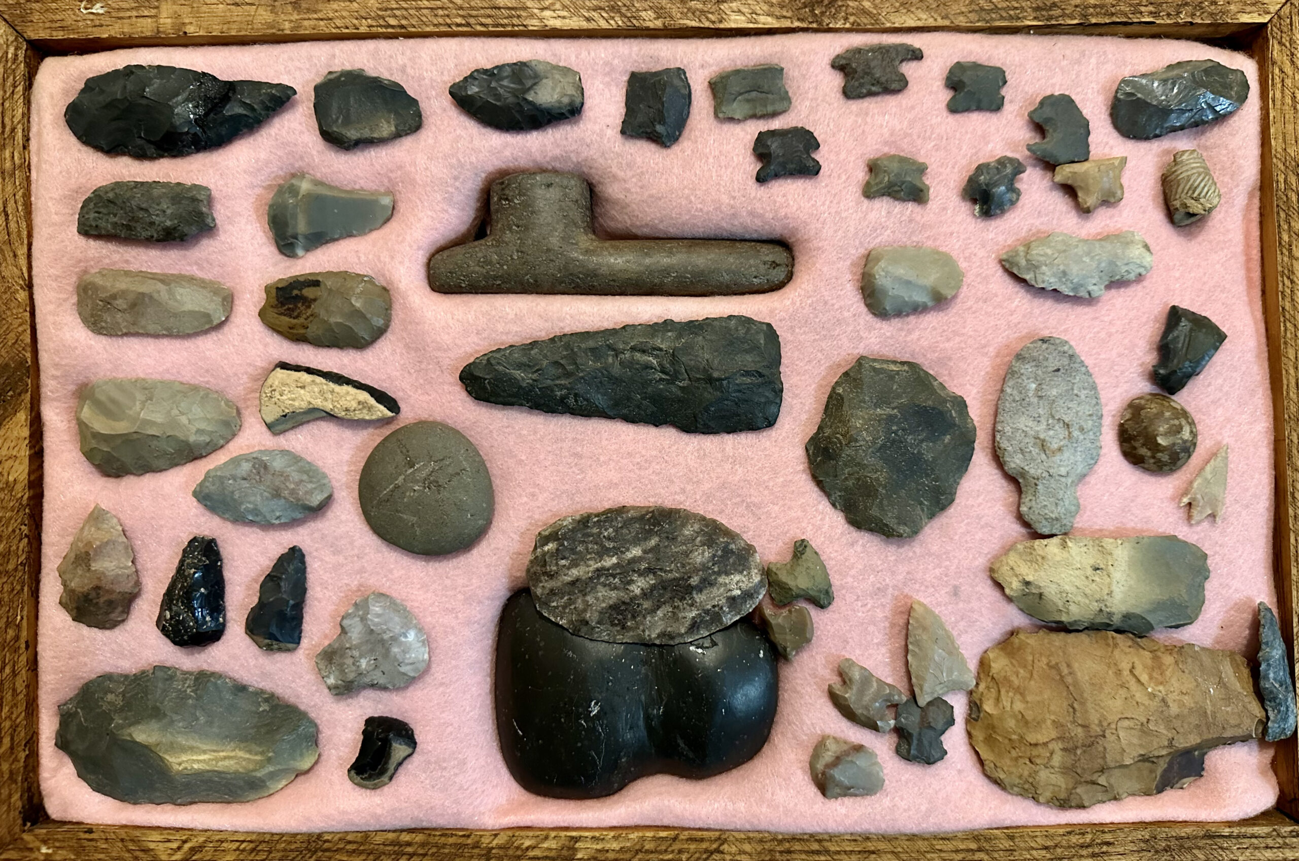 The Pike County Historical Society has recently been allowed from a local collector to photograph a local Native American collection. All items came from an area in and/or immediately adjacent to Pike County. The bead necklace has been restrung and the stone axe rehandled.