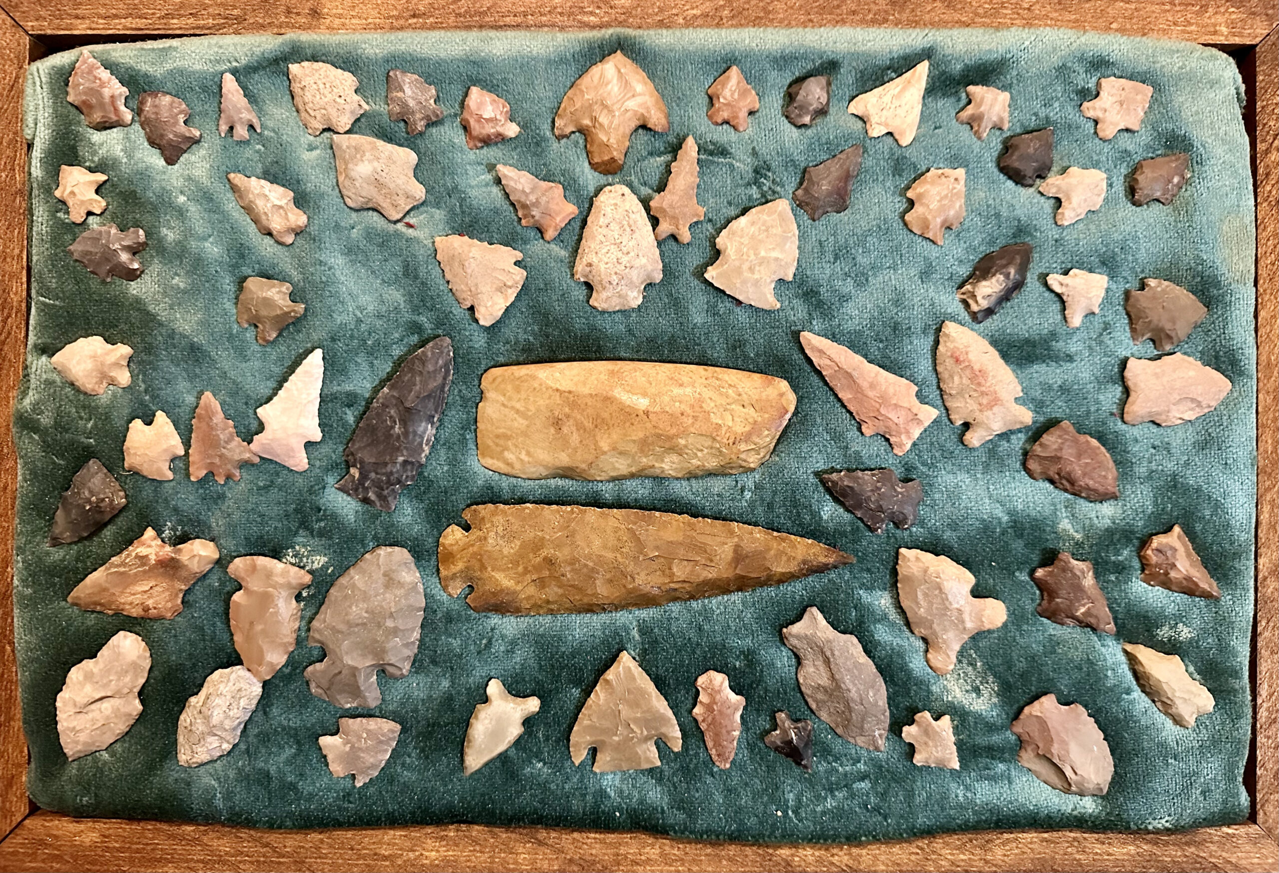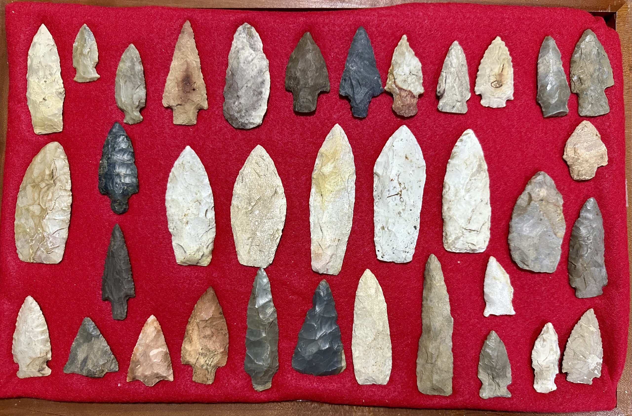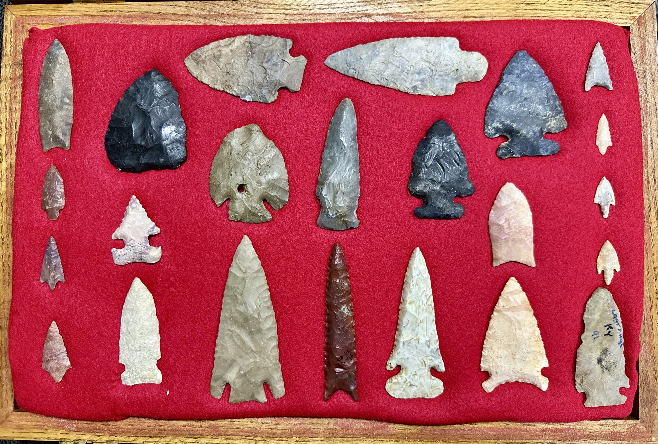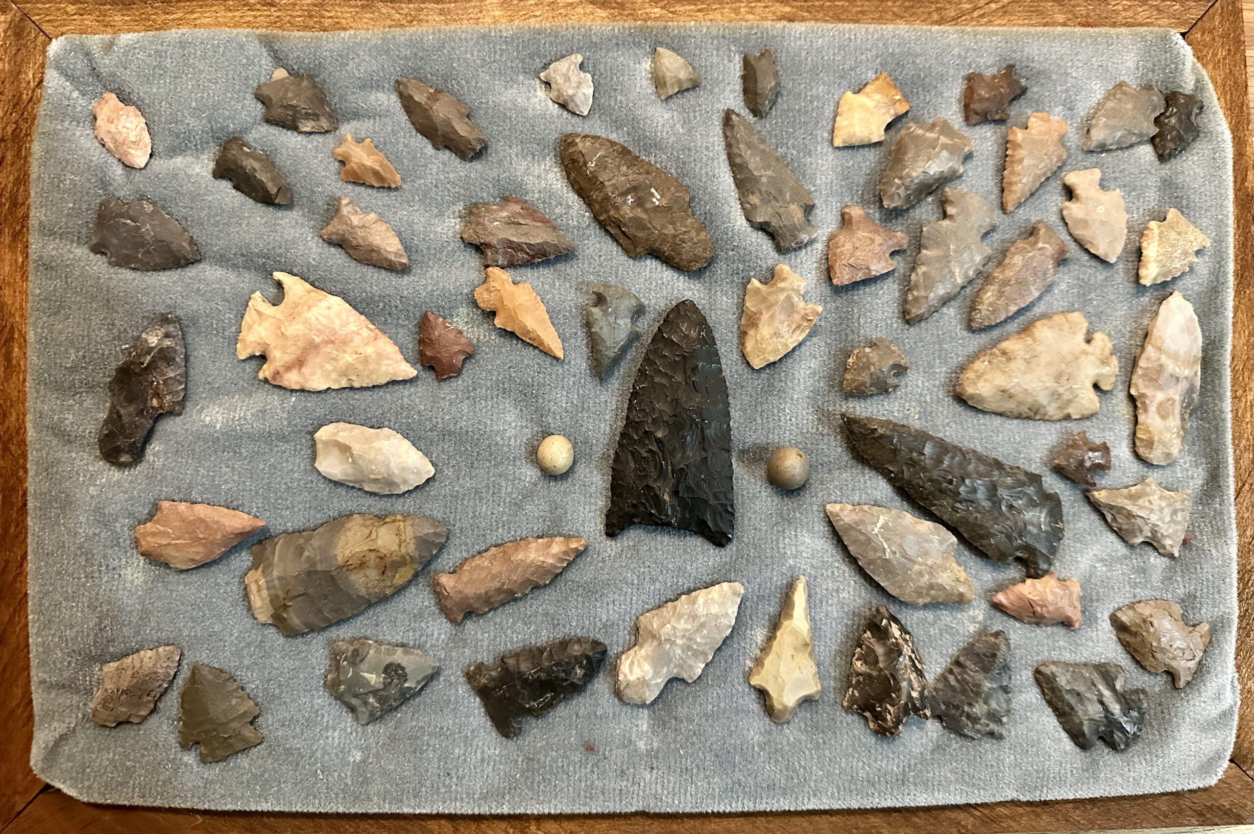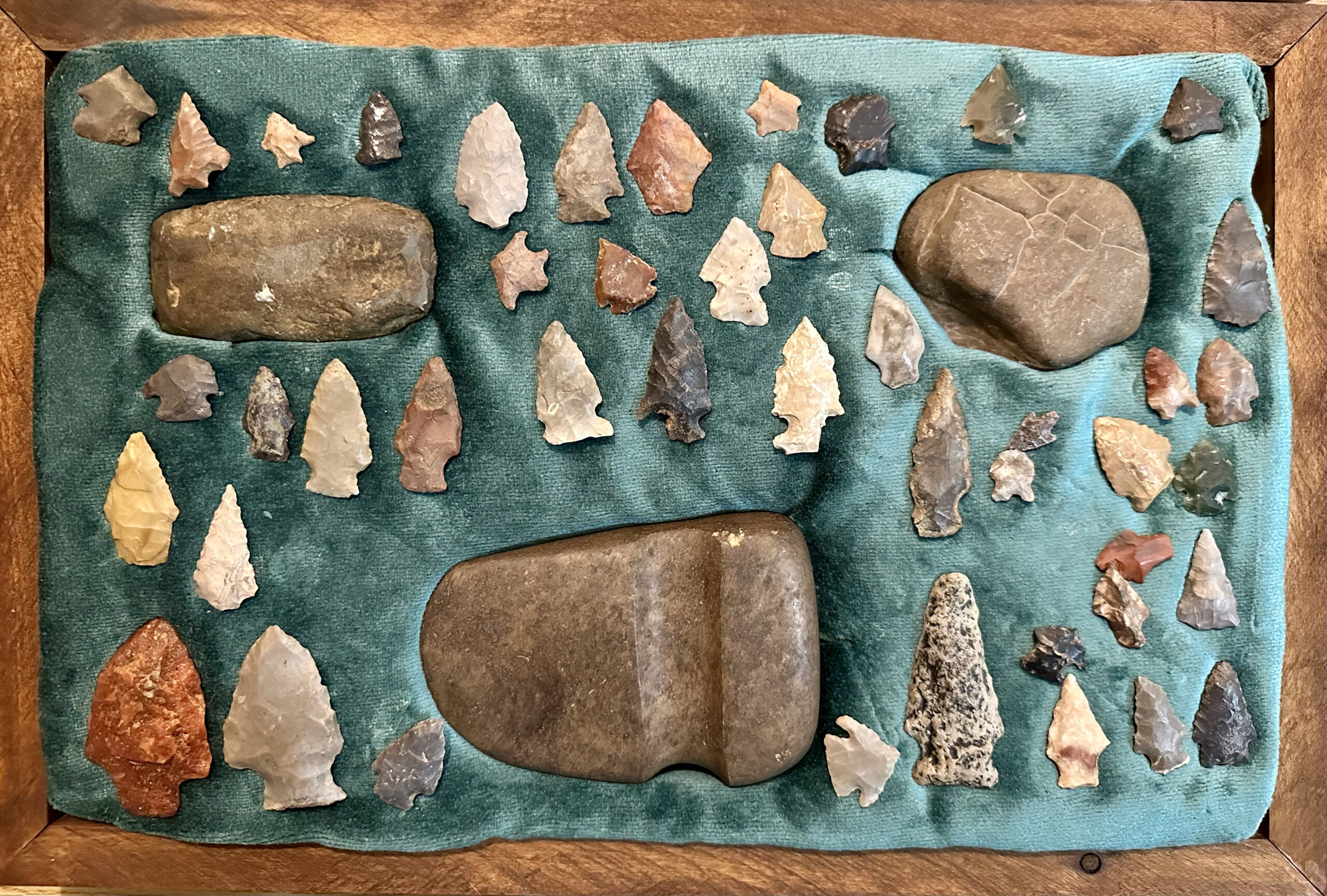 The Pike County Historical Society has recently been allowed from a local collector to photograph a local Native American collection. All items came from an area in and/or immediately adjacent to Pike County. The bead necklace has been restrung and the stone axe rehandled.