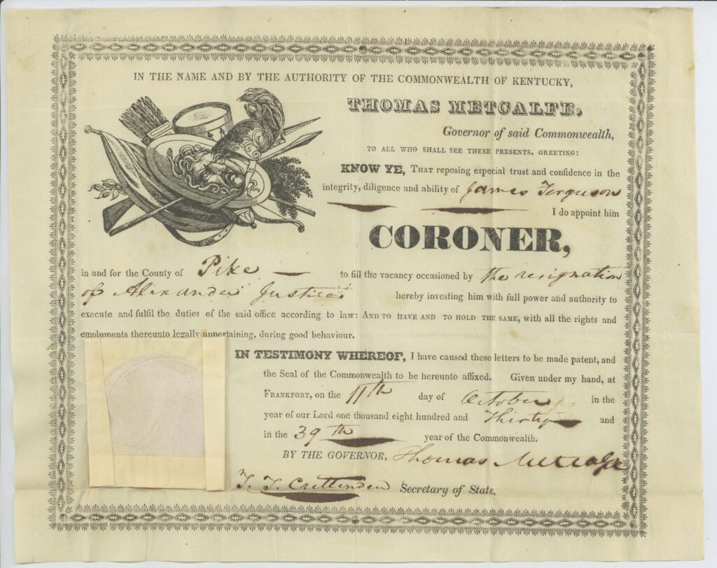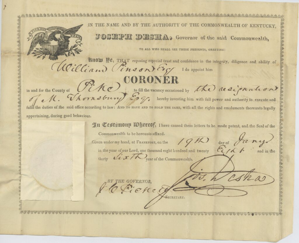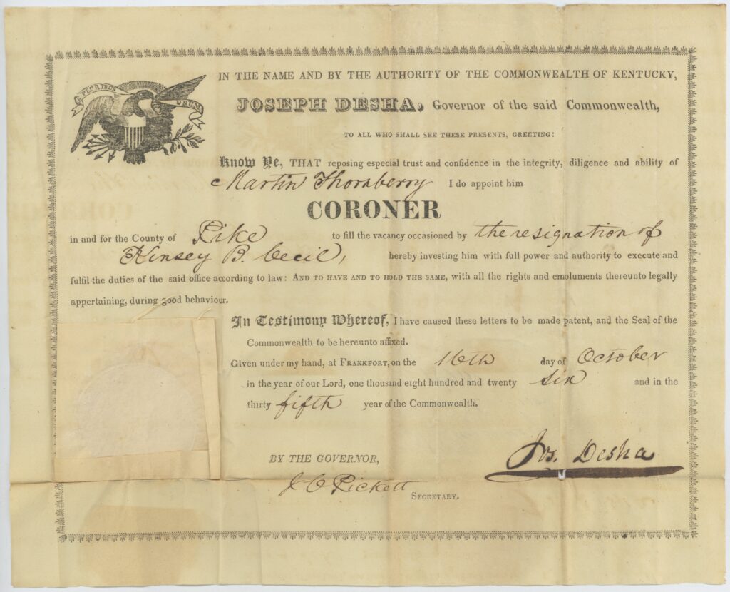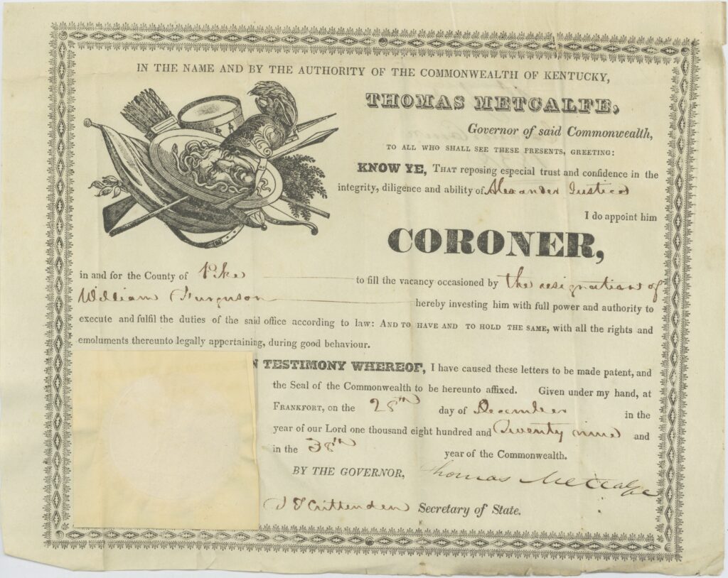 During the 2nd Kentucky Constitutional Convention of 1799, the governor was allowed to appoint Judges, Sheriffs, Coroners, and Justices of the Peace.