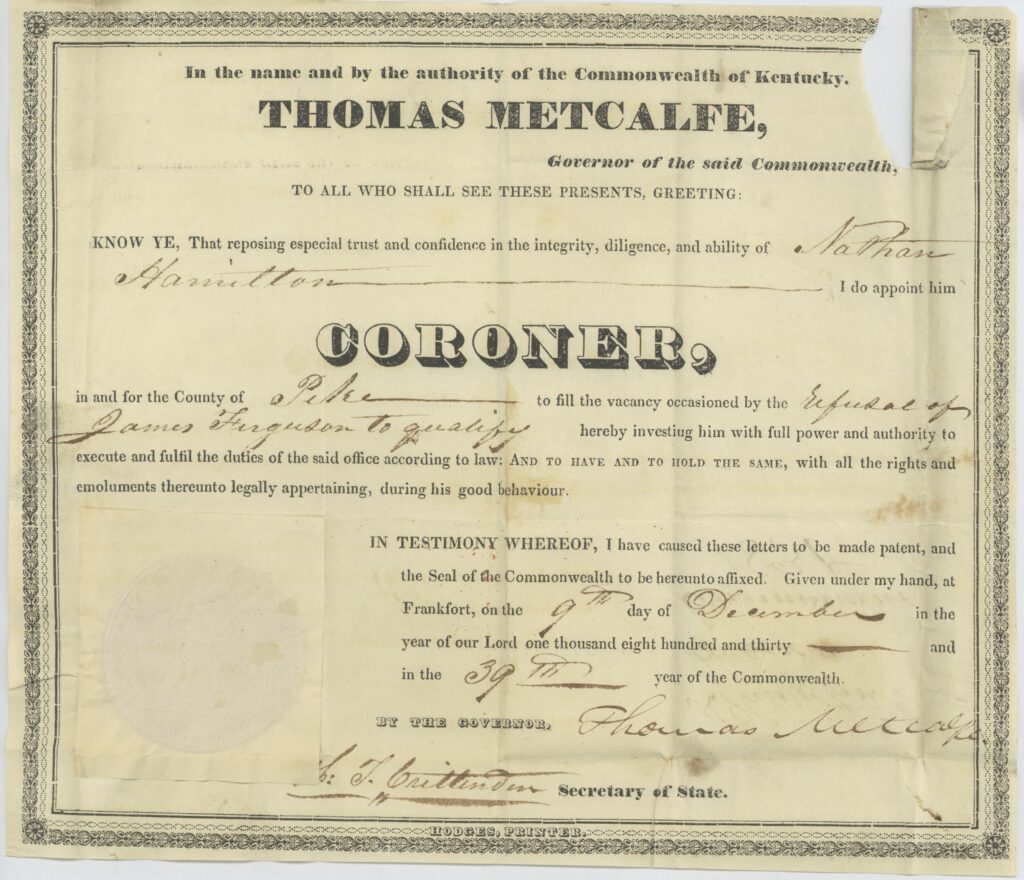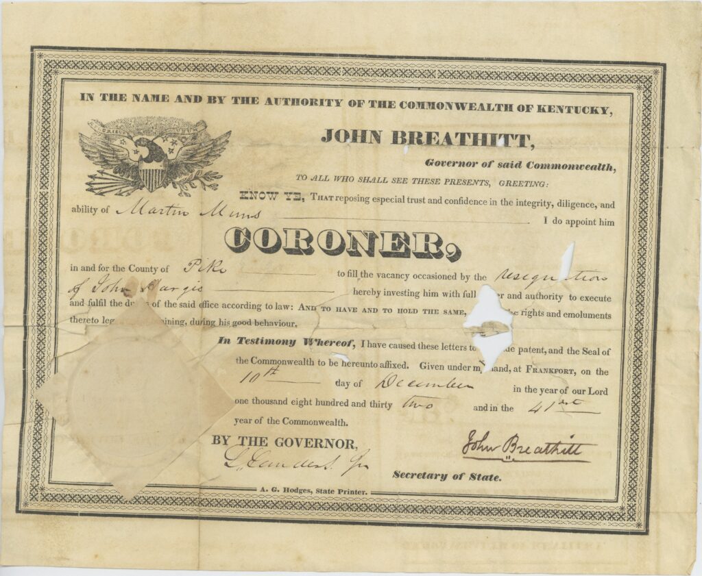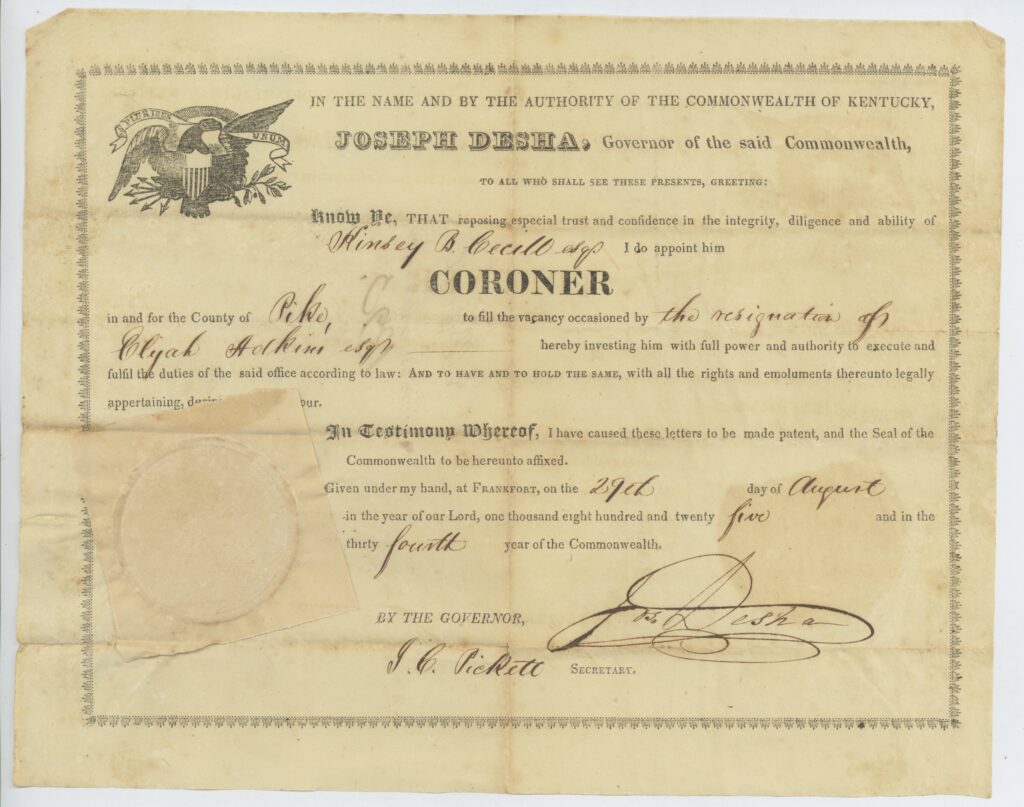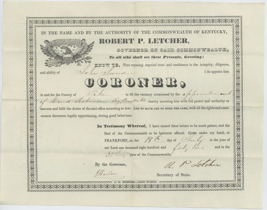 During the 2nd Kentucky Constitutional Convention of 1799, the governor was allowed to appoint Judges, Sheriffs, Coroners, and Justices of the Peace.