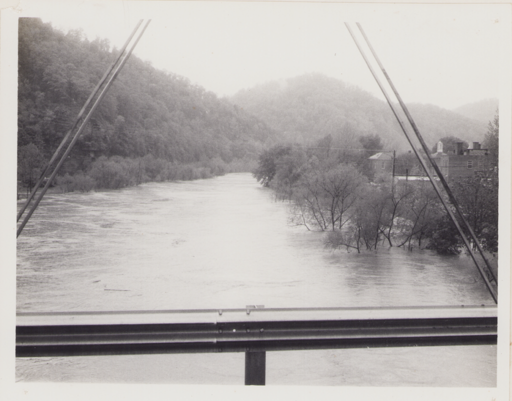 The flood of January 1957 was caused by heavy localized downpours on ground already saturated by days of intermittent rainfall. From the morning of January 27 to the evening of February 1, the amount of rainfall varied from 5 inches to over 12 inches in headwater areas near the Kentucky-Virginia border. The combination of steep slopes and high runoff rates resulting from pre-saturation of the soil concentrated the area-wide rainfall in the many steep and narrow mountain streams. The rush of water which poured into the main river channels from the many small tributaries rapidly filled them and poured over the riverbanks onto the bottom lands.