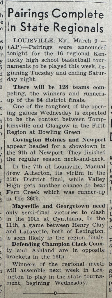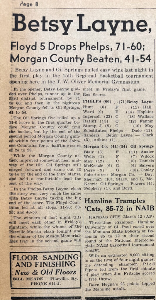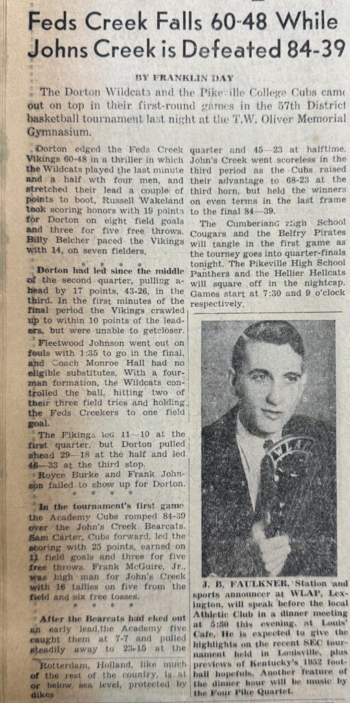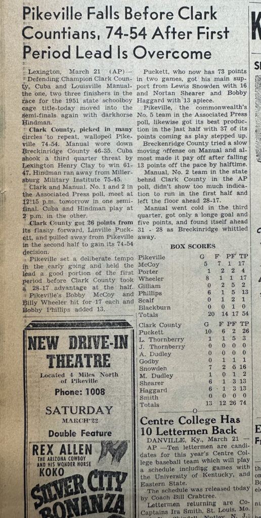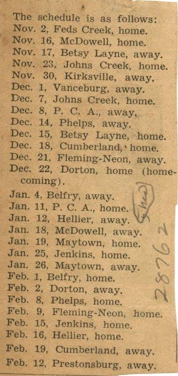Pikeville Basketball Schedule 1951/1952
