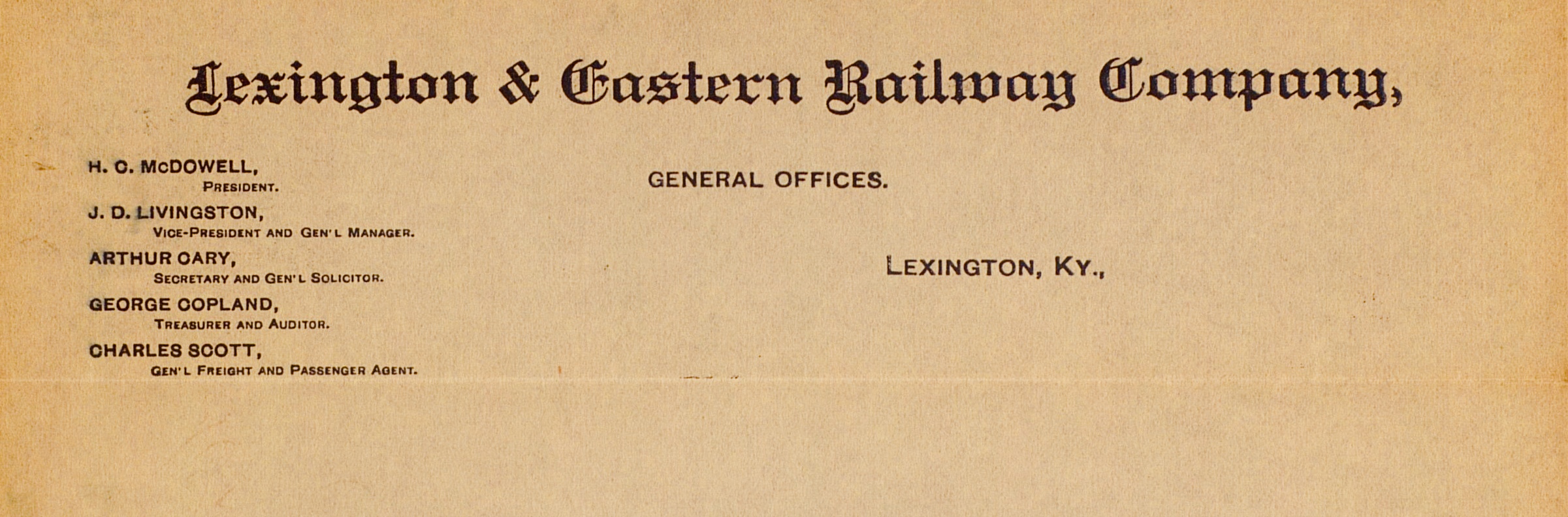 The Sandy Valley and Elkhorn Railway Company have let a contract for the construction of a railroad approaching this field from the Big Sandy River and through the heart of the property, a distance of thirty miles. This road will connect with the Chesapeake and Ohio Railway at its northeastern terminus and with the extension of the Louisville and Nashville Railroad on the southwestern or Kentucky River side. The contract calls for the road to be completed within one year.