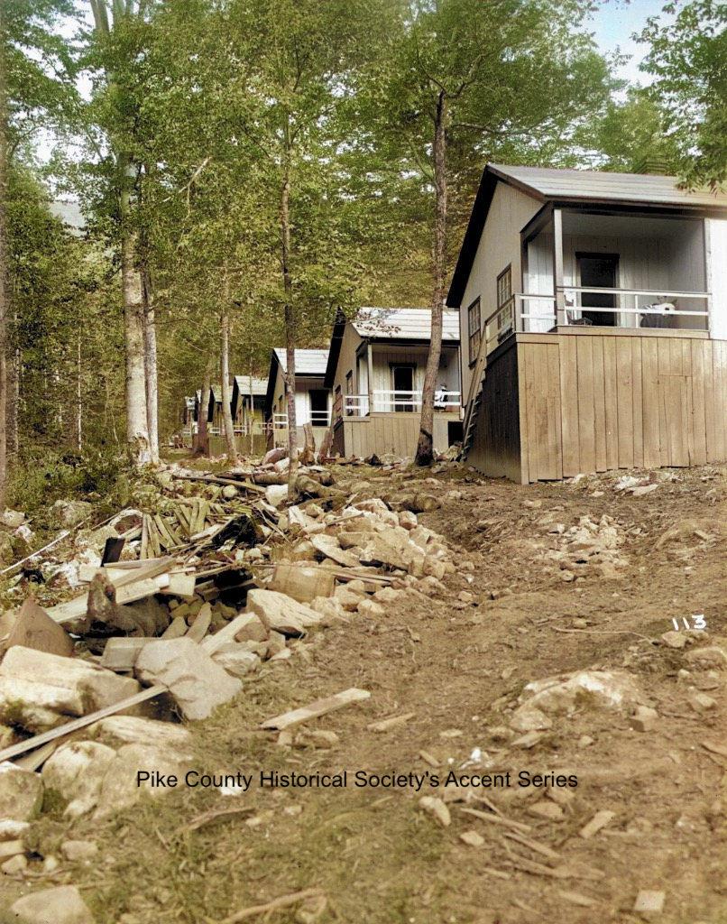 Newly constructed Bungalow, construction crew were building a road above house. while using dynamite to blast rock. accidentally shot part of the roof off when a piece of rock tore through roof of Bungalow. It was always said this house was built for Devil John W Wright’s