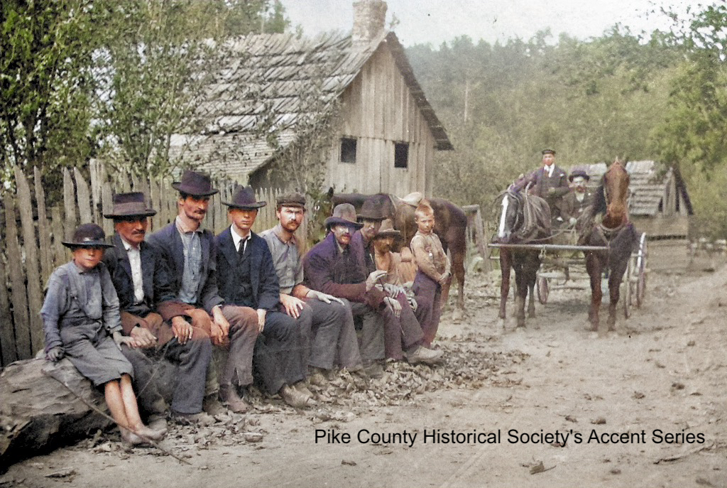 Most of the characters written into The Trail of the Lonesome Pine were setting on this log beside the old state road on Little Elkhorn Creek known as Lonesome Cove. The well dressed man on the Buckboard Wagon has a likeness resembling S.E. Baker, this could easily be Hon. Sam Budd listed in The Trail of the Lonesome Pine. The dark complexion man second from the left, could be Black Tolliver, Mary Bentley’s brother John D. Bentley, nearly all Bentleys have real dark complexion.