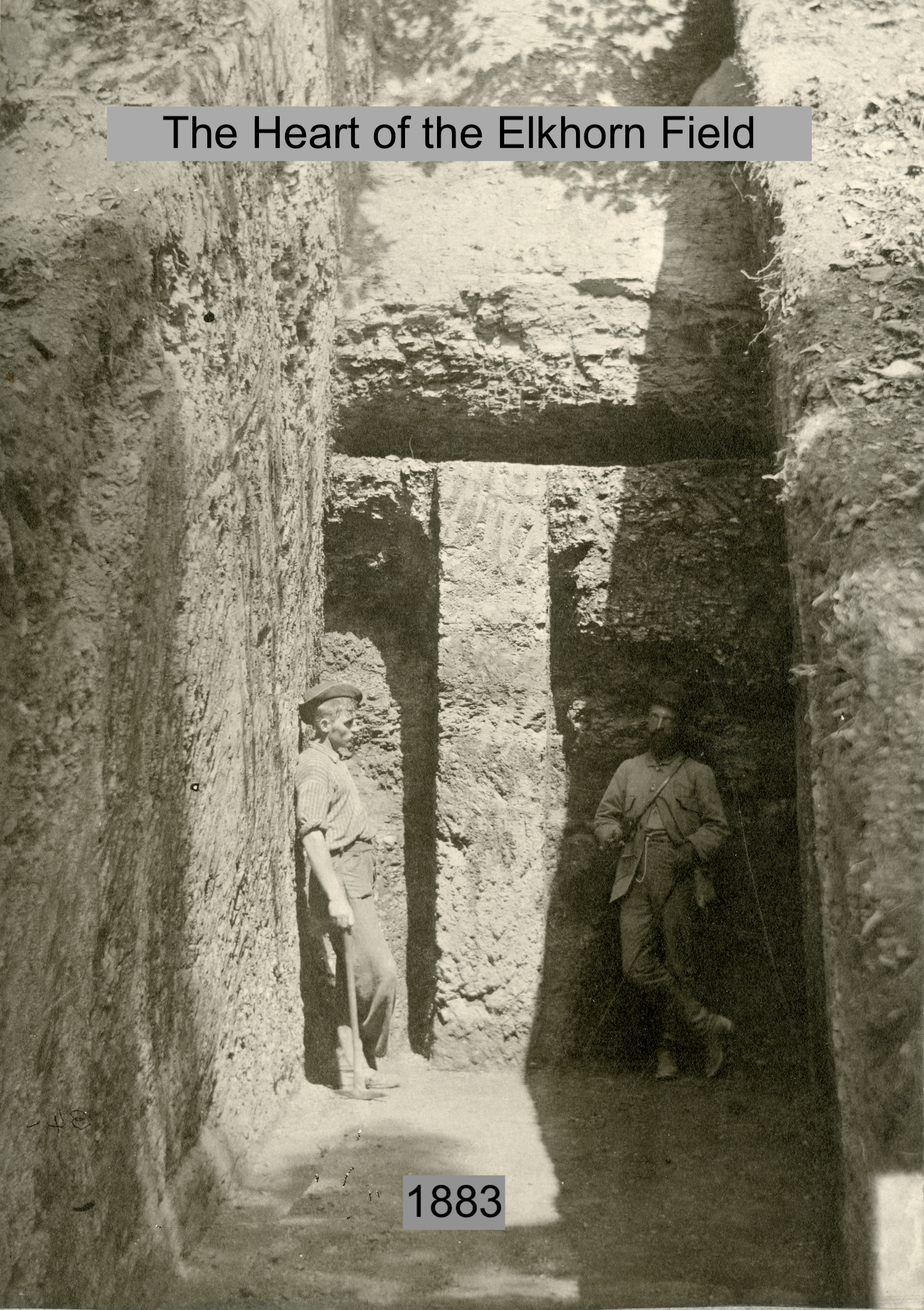 Sampling the No. 3 Elkhorn , Left to Right: John CC Mayo, Andrew S. McCreath a highly respected Analytical Chemist from Pennsylvania Steel Country . Sharon Steel Group highly sought his opinion. John T Jones. Sharon Steel Company’s all-in-one ground man before group sold to J.P Morgan, traveling all over United States representing the interest for Kimberly and Buhl, working in and around Elkhorn Field 1901 through 1903.